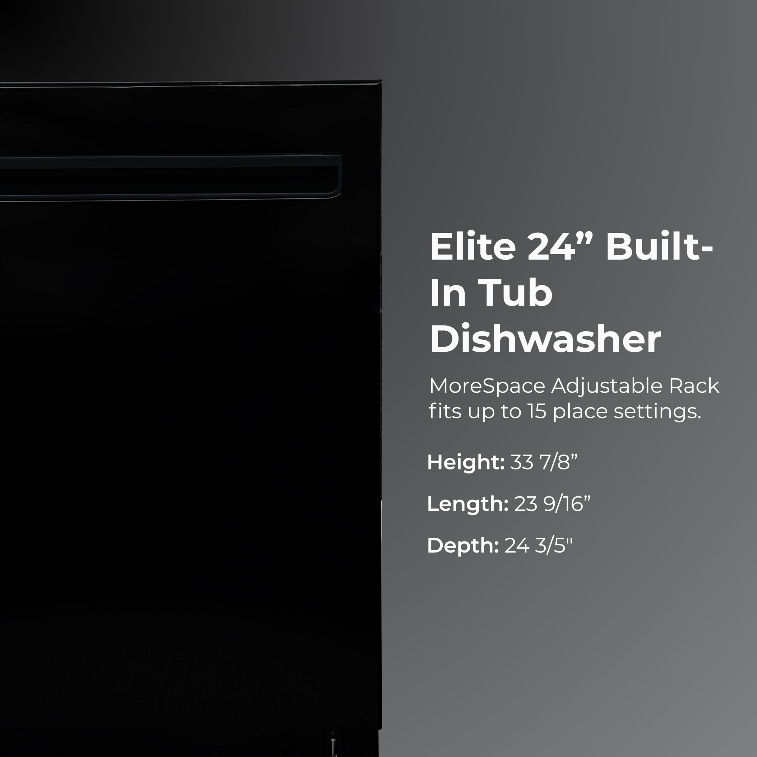 The Kenmore 24" Built-In White Dishwasher delivers ultra-quiet performance and modern design for busy nights and delicate dishes. UltraWash Plus uses three spray arms and filtered water to power through stuck-on food. The SmartWash Cycle detects soil levels in the water and automatically adjusts the temperature, pressure, and cycle time for a deep, efficient clean every time. TurboDry uses hot air circulation and a heating element to remove moisture from every load, while the Extra Dry and Express Cycles give you cabinet-ready results faster. The TurboFlex Third Rack adds 35 percent more loading space for long utensils, tools, and flatware, and slides aside to make room for tall items below. The MoreSpace Plus Adjustable Rack shifts between three heights, even when fully loaded, so you can customize the interior for everything from oversized pots to delicate stemware. The stainless steel tub resists stains and retains heat to help improve drying performance with every cycle. Built-in LED interior lighting makes it easy to see inside, and a green floor light shows when the cycle is running. Hidden light-touch controls and a clean white finish complete the look. This dishwasher fits up to 15 place settings and includes a removable wine glass holder for added peace of mind when washing stemware. ENERGY STAR Certified and operating at just 42 dBA, it offers a powerful clean that runs quietly in the background. Built-in Leak Detection helps protect your home by monitoring water flow and automatically draining if a problem is detected.