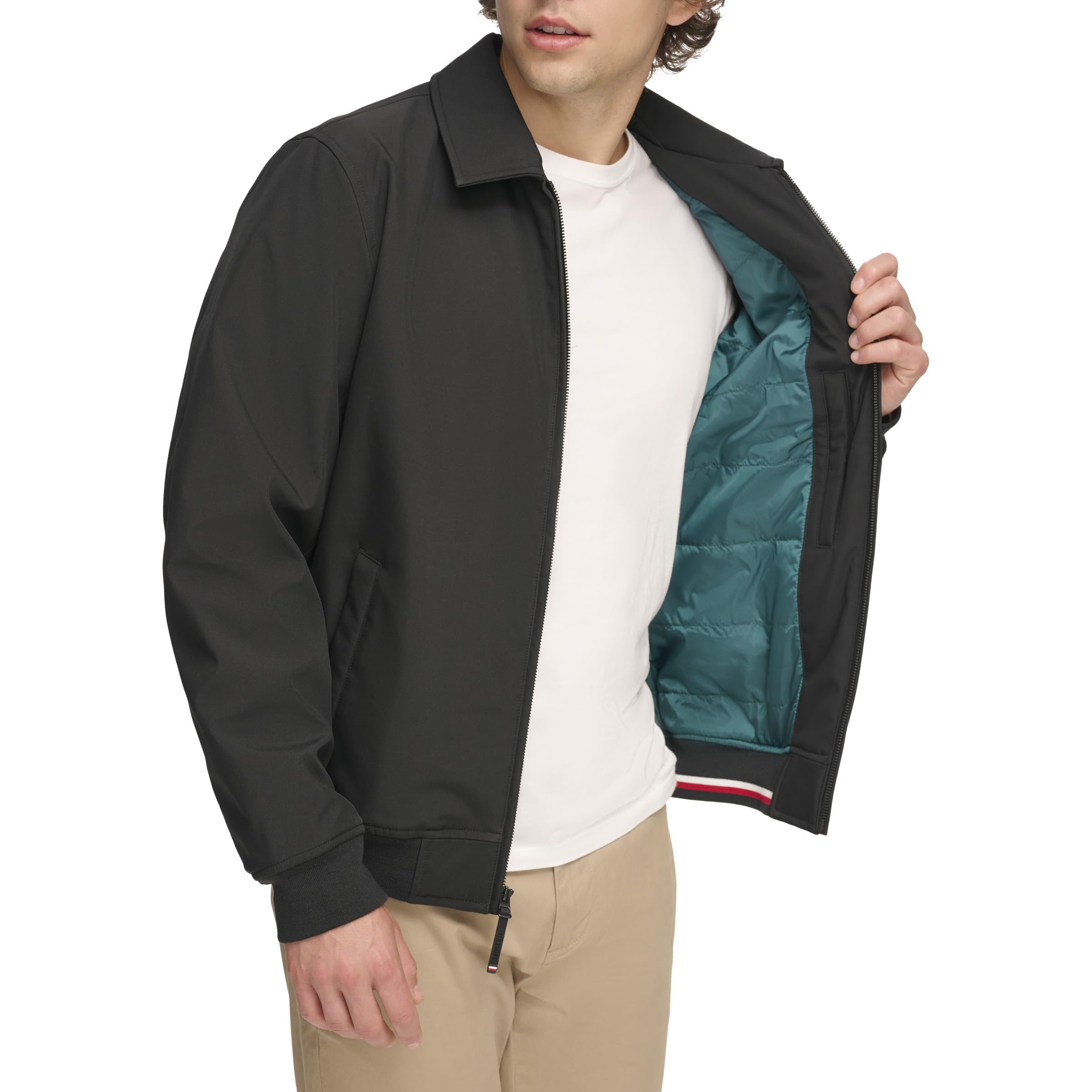 Description Throw on and go with this Lightweight Bomber by Tommy Hilfiger. Designed with soft, rib knit cuffs and hem for comfort, this water resistant jacket will keep you both warm and dry.