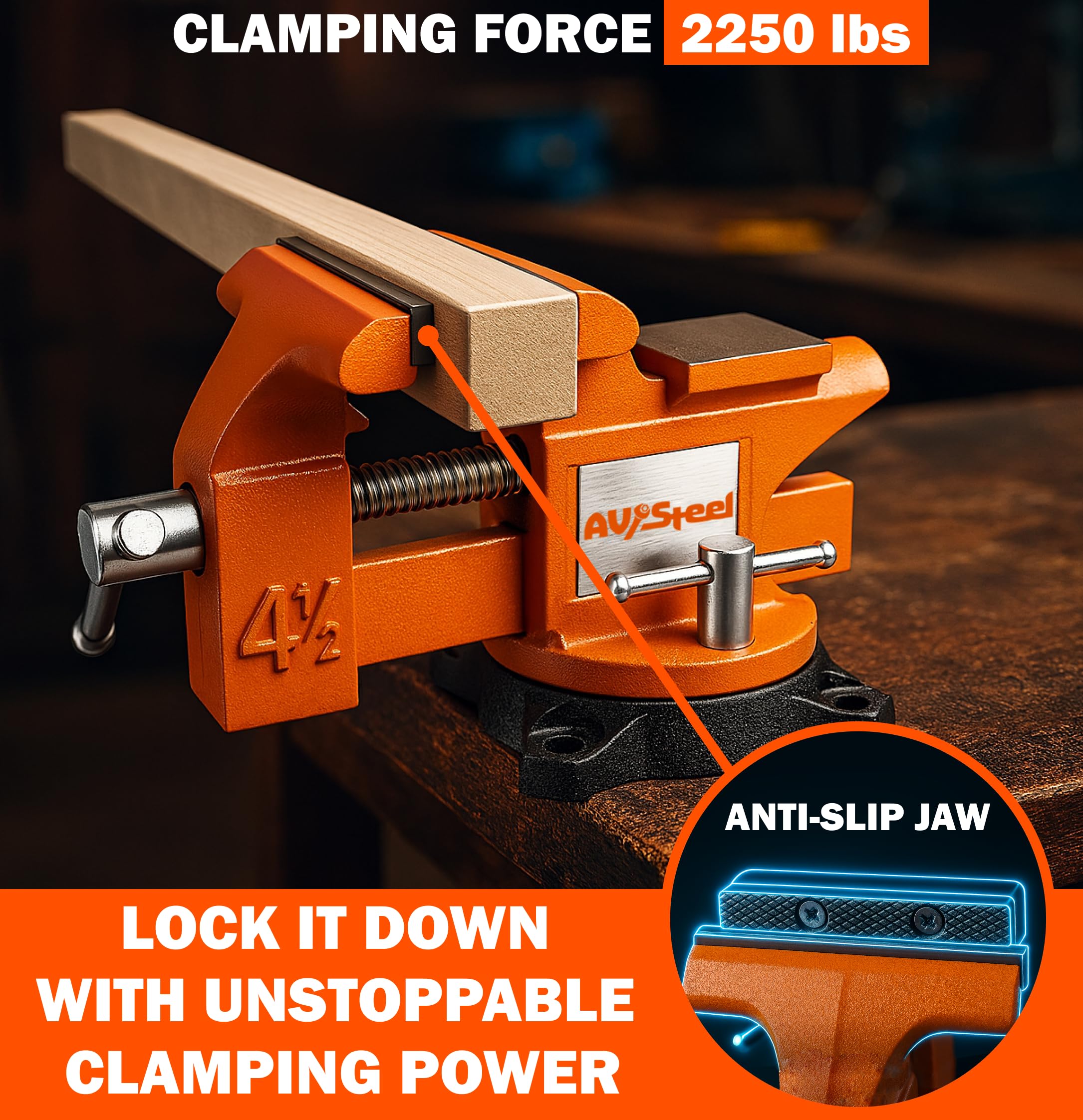 ✅ Durability and Power: Constructed from high-strength cast iron, this vise is built to withstand immense pressure and daily impact. It offers exceptional durability and a long service life for even the most demanding workshop environments. With a powerful clamping force of 2250 lbs, it provides the stability needed for precise and safe work.