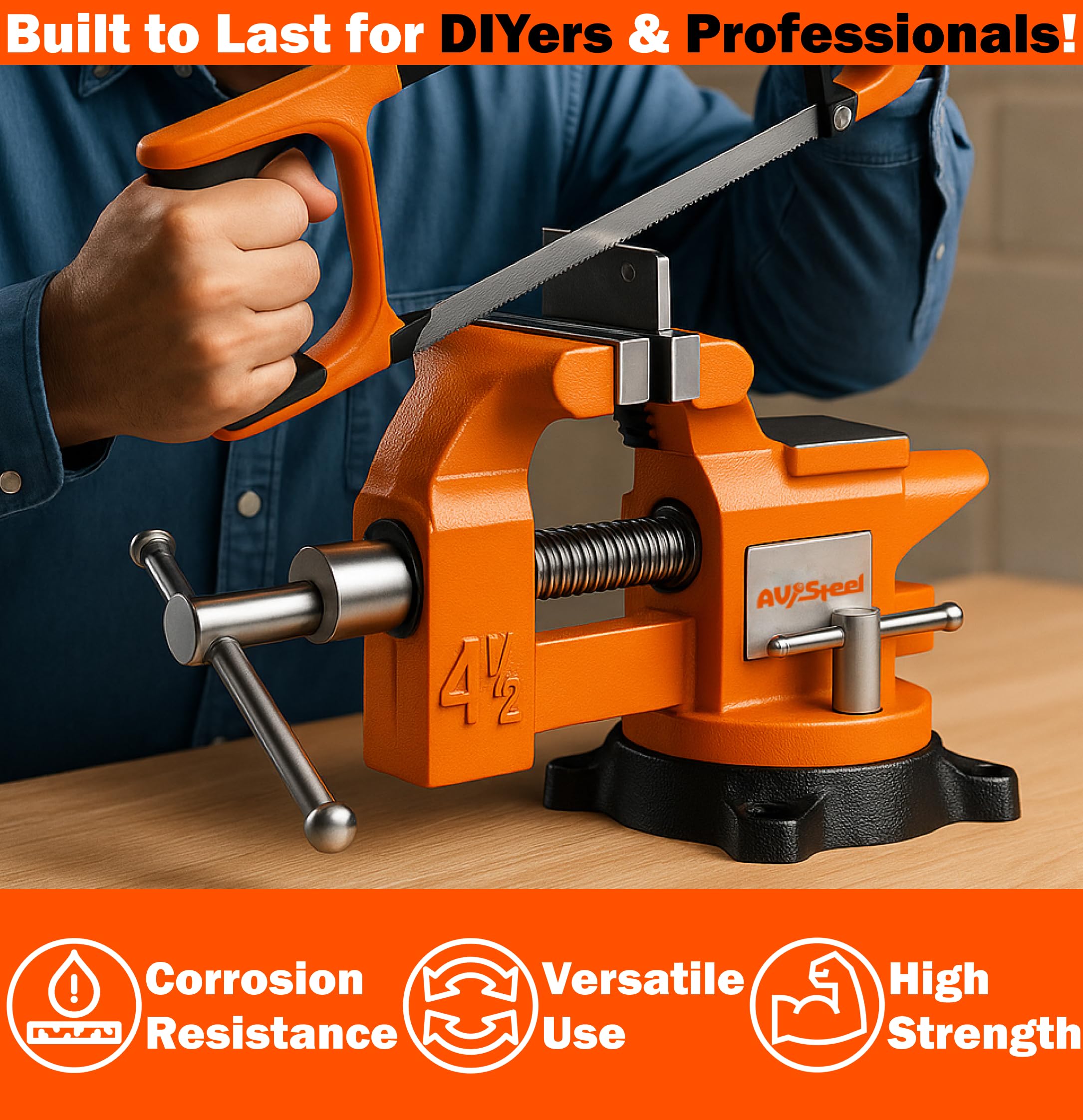 ✅ Professional Result: Bench vise designed for easy permanent mounting to your workbench, this tool is an essential addition for any serious DIY enthusiast or professional seeking a reliable and heavy-duty table vise clamp.