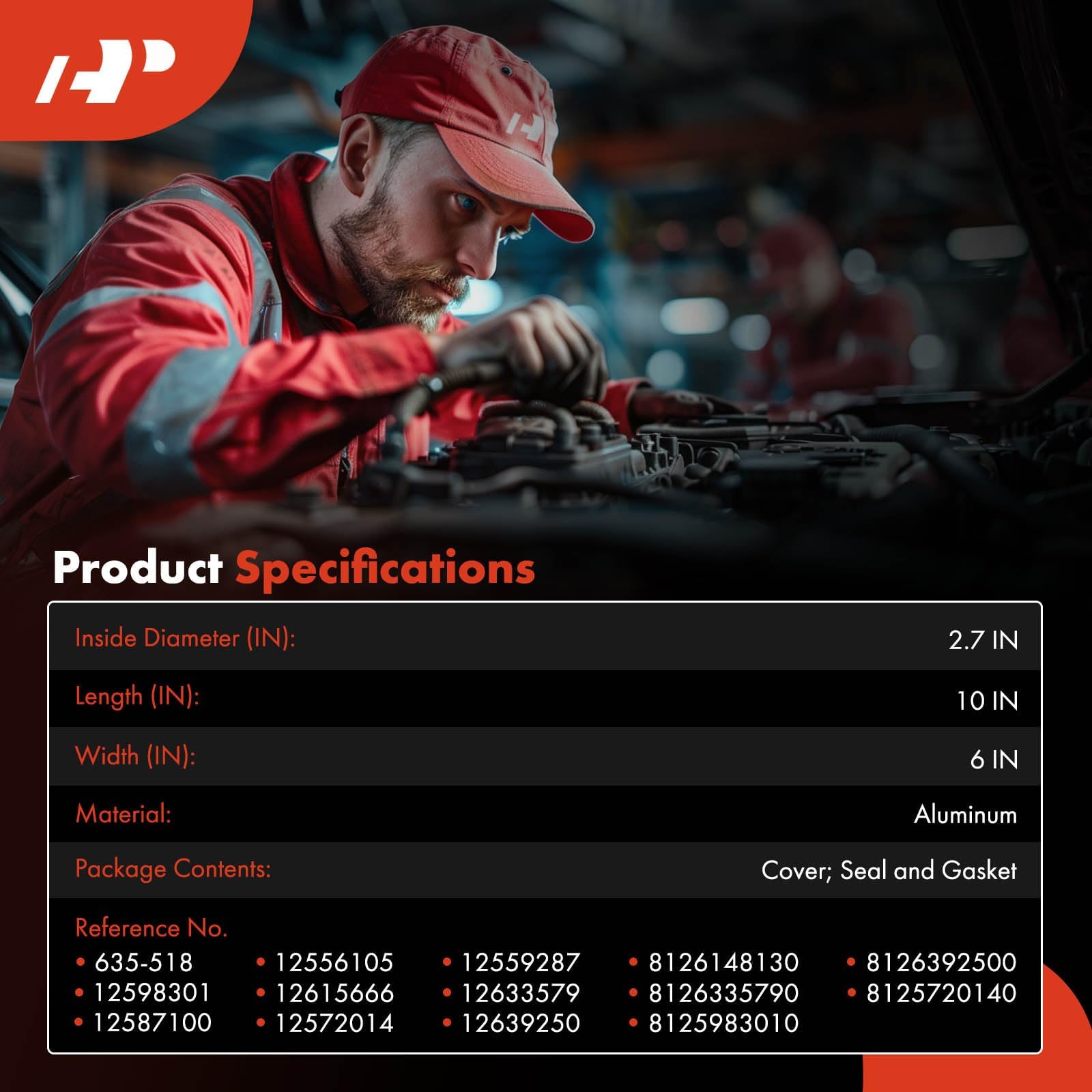 [Specifications]: Reference Number: 635-518, 12633579, 12639250, 12615666, 12598301, 500323RSH, SK635518, 8-12572-014-0, 8-12598-301-0, 8-12614-813-0, 8-12633-579-0, 8-12639-250-0 ①Inside Diameter (in): 2.7 in; ②Length (In): 10 in; ③Width (in): 6 in // [Buy with Confidence]: A-Premium offers a one-year unlimited-mileage guarantee on our meticulously crafted timing cover. We offer a wide variety of automotive accessory categories, ensuring that you can hit the road with peace of mind.