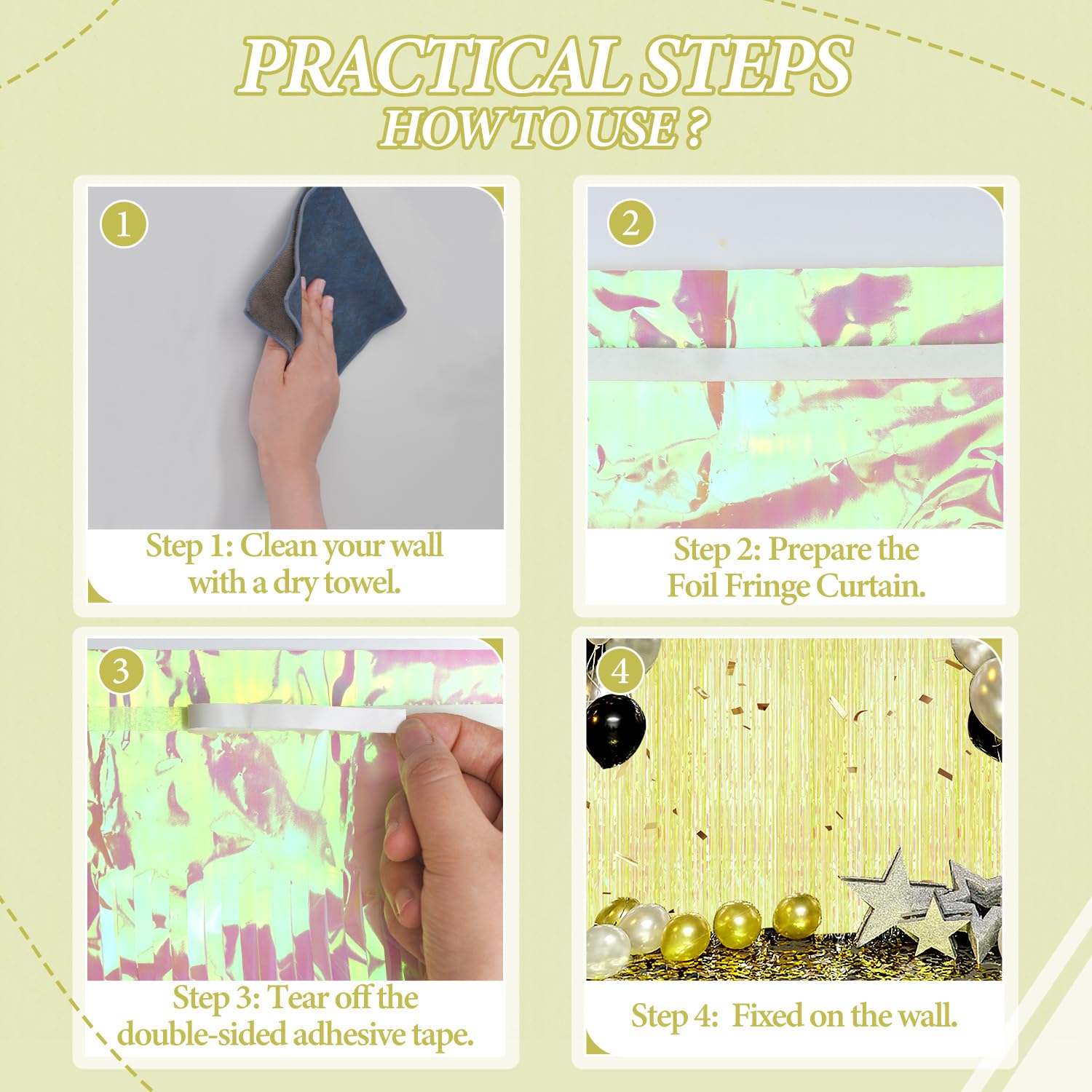 【3 Sets of Foil Fringe Curtains】Each package includes 3 sets of 3.3x8.2 ft foil fringe curtains, providing enough length to decorate your party with ease. Perfect for creating a stunning backdrop for any occasion.