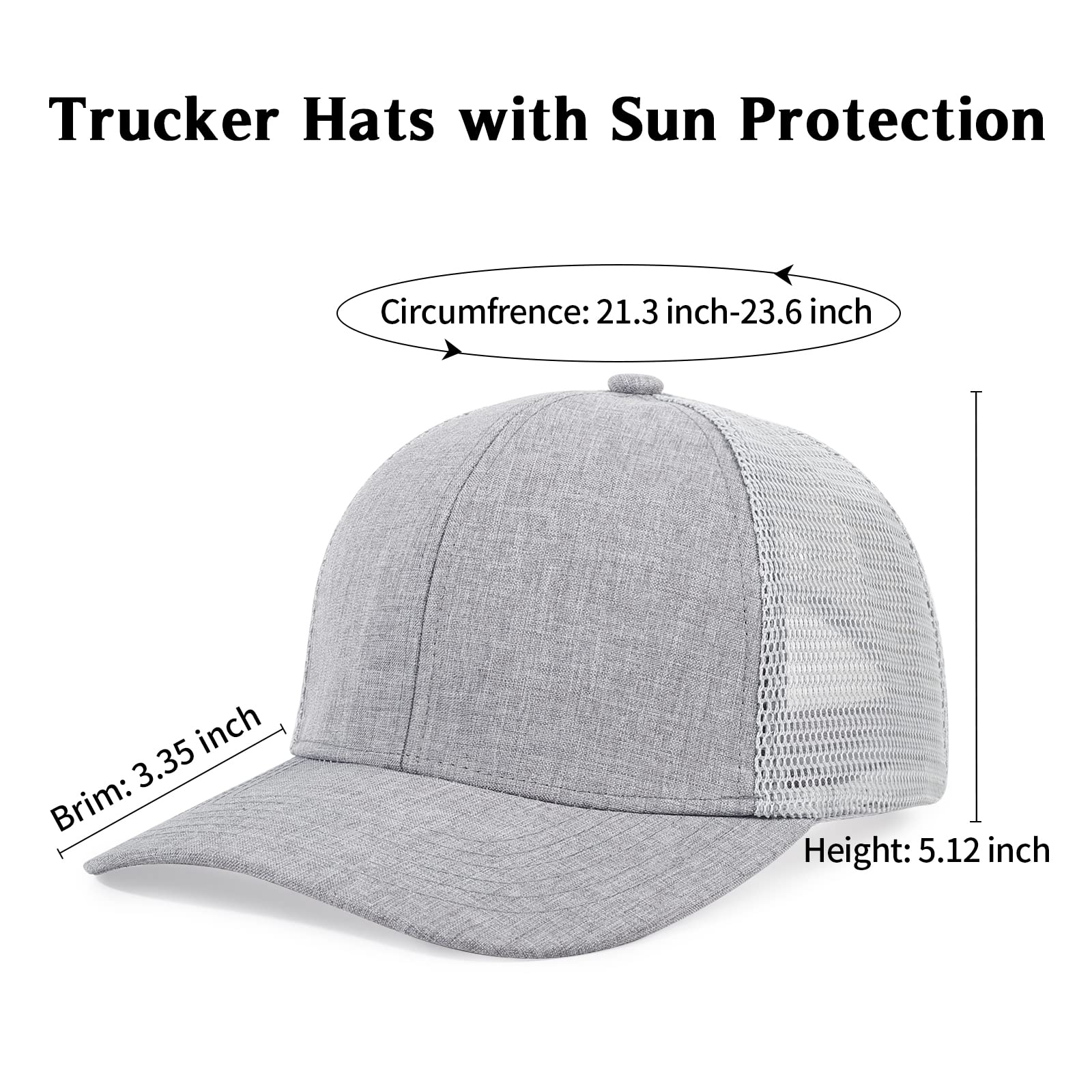 Premium Material: Our mesh trucker caps are made of 100% high-quality cotton fabric.The plain baseball caps can protect the sensitive scalp from UV damage. The material is soft, easy to pack and compress.