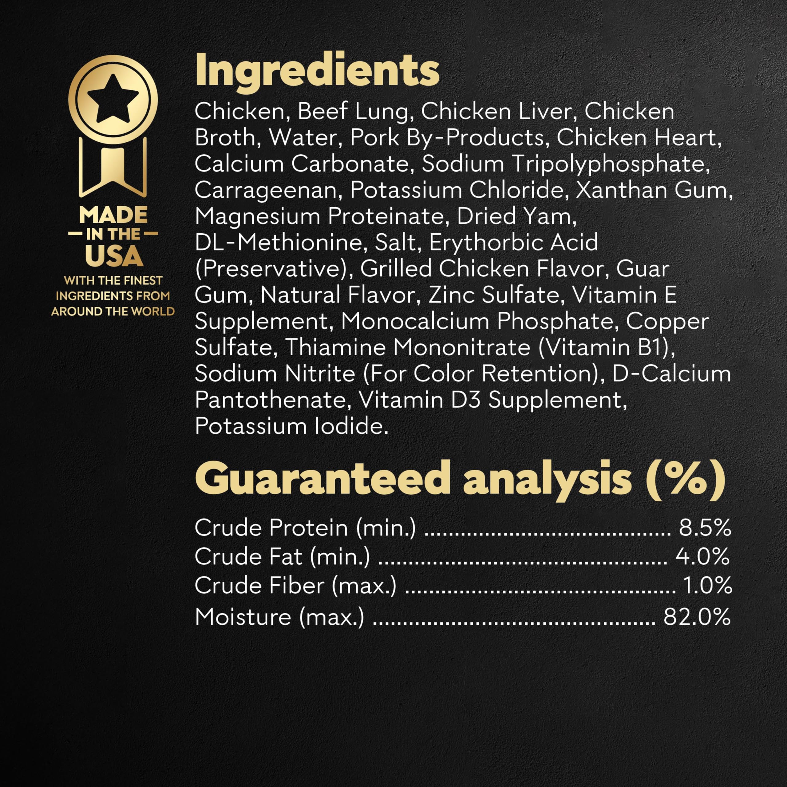 This Cesar dog food shows that the best way to show your dog love is by keeping them happy and healthy with gourmet meals. With real chicken as the #1 ingredient, Cesar Classic Loaf in Sauce Wet Dog Food Grilled Chicken Flavor features high-quality protein and nutrition that is slow-cooked for great taste. This product contains no fillers, added sugar, or artificial flavors; ingredients are natural as defined by the Association of American Feed Control Officials (AAFCO). Cesar Classic Loaf in Sauce is easy to digest, but hard for your dog to resist. Made in the USA with the finest ingredients from around the world, dog owners can be sure your best friend is getting a meal that is 100% complete and balanced for adult dogs. This small breed wet dog food comes in convenient trays with easy peel-away seals, making serving simple for pet parents who want a balanced diet and convenience. Delicious and healthy meals for everyday enjoyment and pet care with Cesar Classic Loaf in Sauce Grilled Chicken Flavor, a trusted soft dog food for discerning companions.