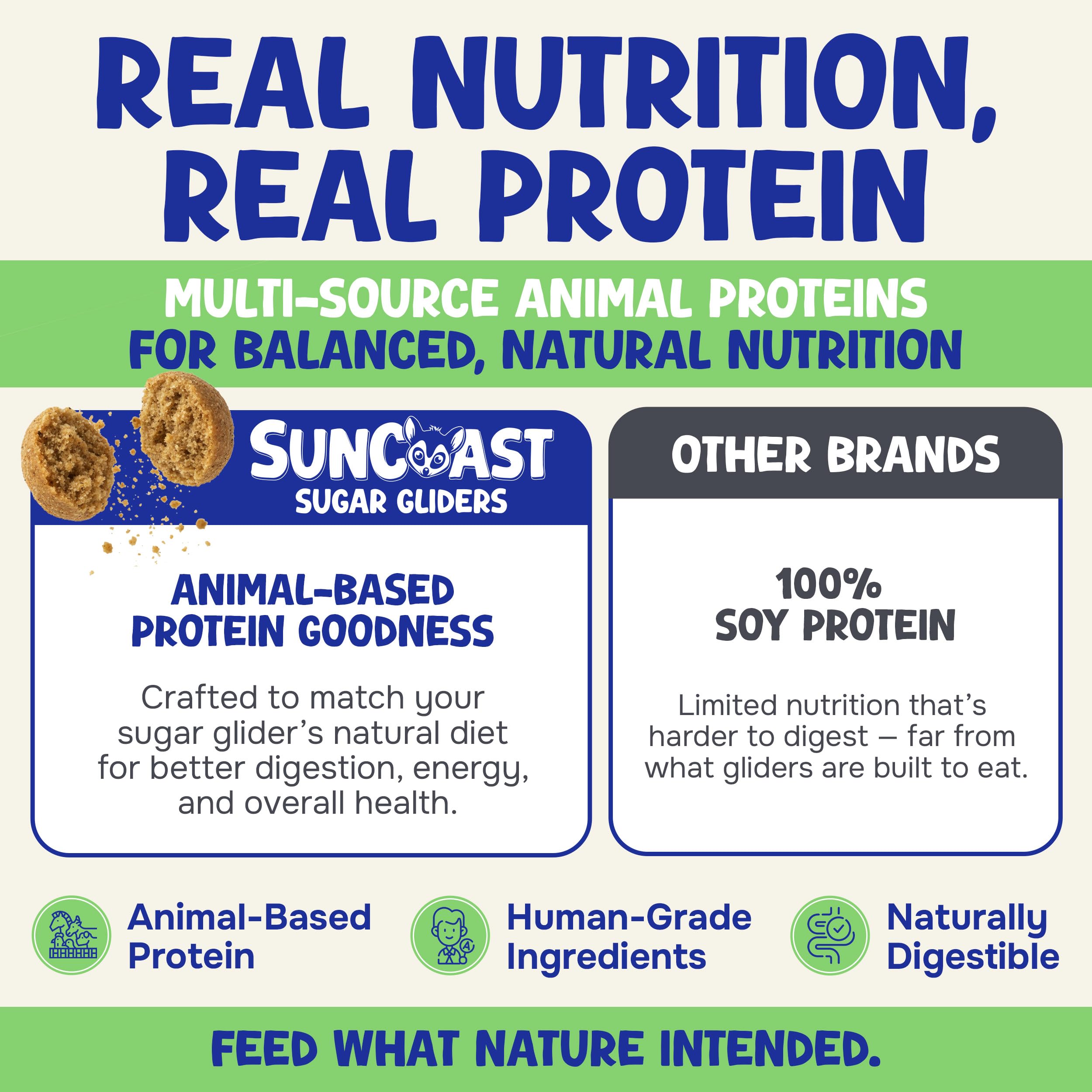 TRUSTED SINCE 1999: Suncoast Sugar Gliders has been making this same recipe for over 20 years. The pellet form stays fresh longer than powdered foods and makes feeding time cleaner. Thousands of glider families rely on this daily, and vets recommend it because the ingredients are human-grade quality. Each bag provides consistent nutrition that pet owners trust for their beloved sugar gliders, ensuring reliable energy levels and optimal health outcomes for these special exotic companions.