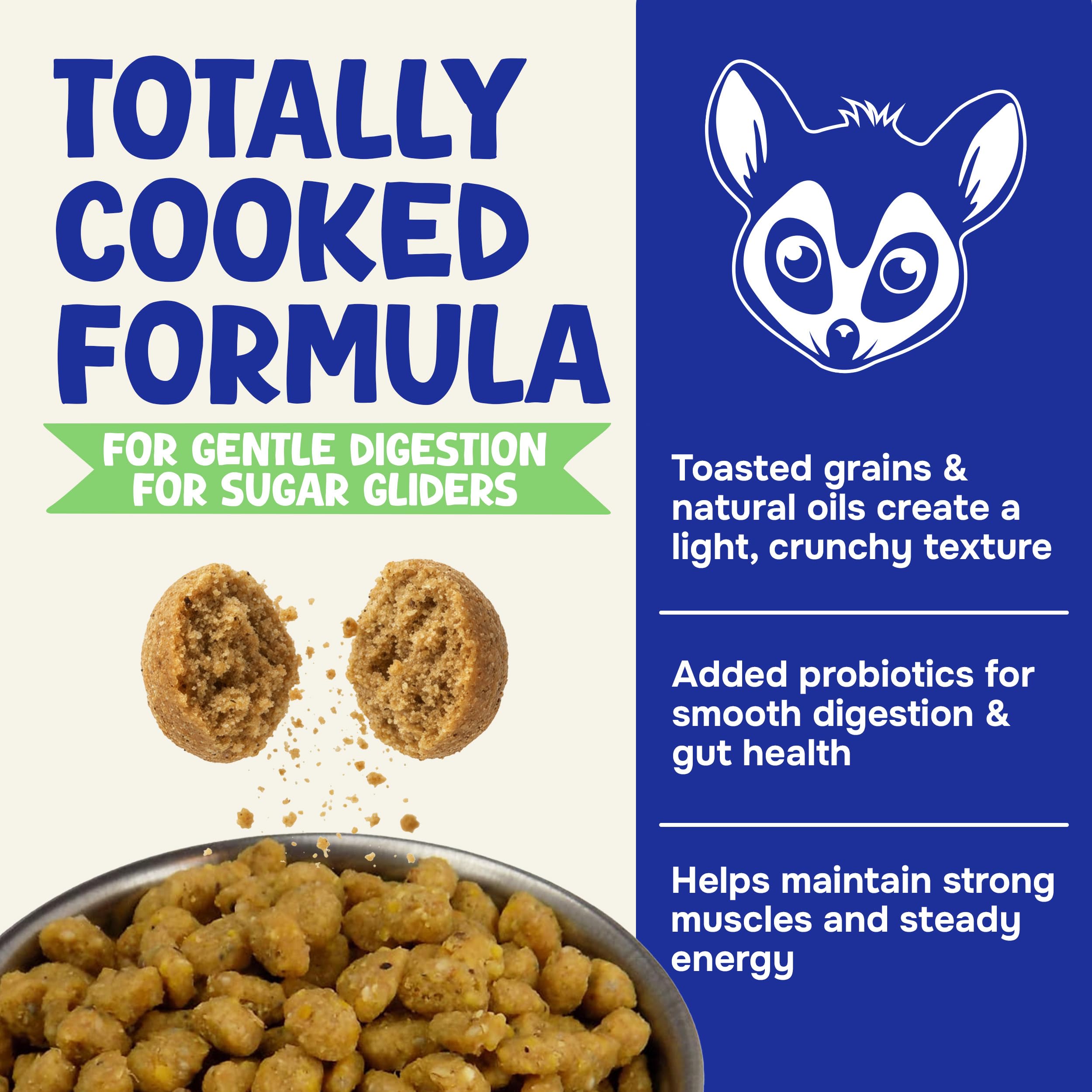 FRUITY FLAVOR THEY LOVE: The toasted grains and fruit taste make mealtime something your glider looks forward to. Even picky eaters go for this blend because it tastes good and smells appealing. The cooking process makes it easier to absorb, so they get more from each bite without needing extra supplements. Natural oils and fiber promote healthy digestion, while the irresistible taste ensures consistent feeding habits. This premium formula eliminates mealtime struggles common with exotic pets.