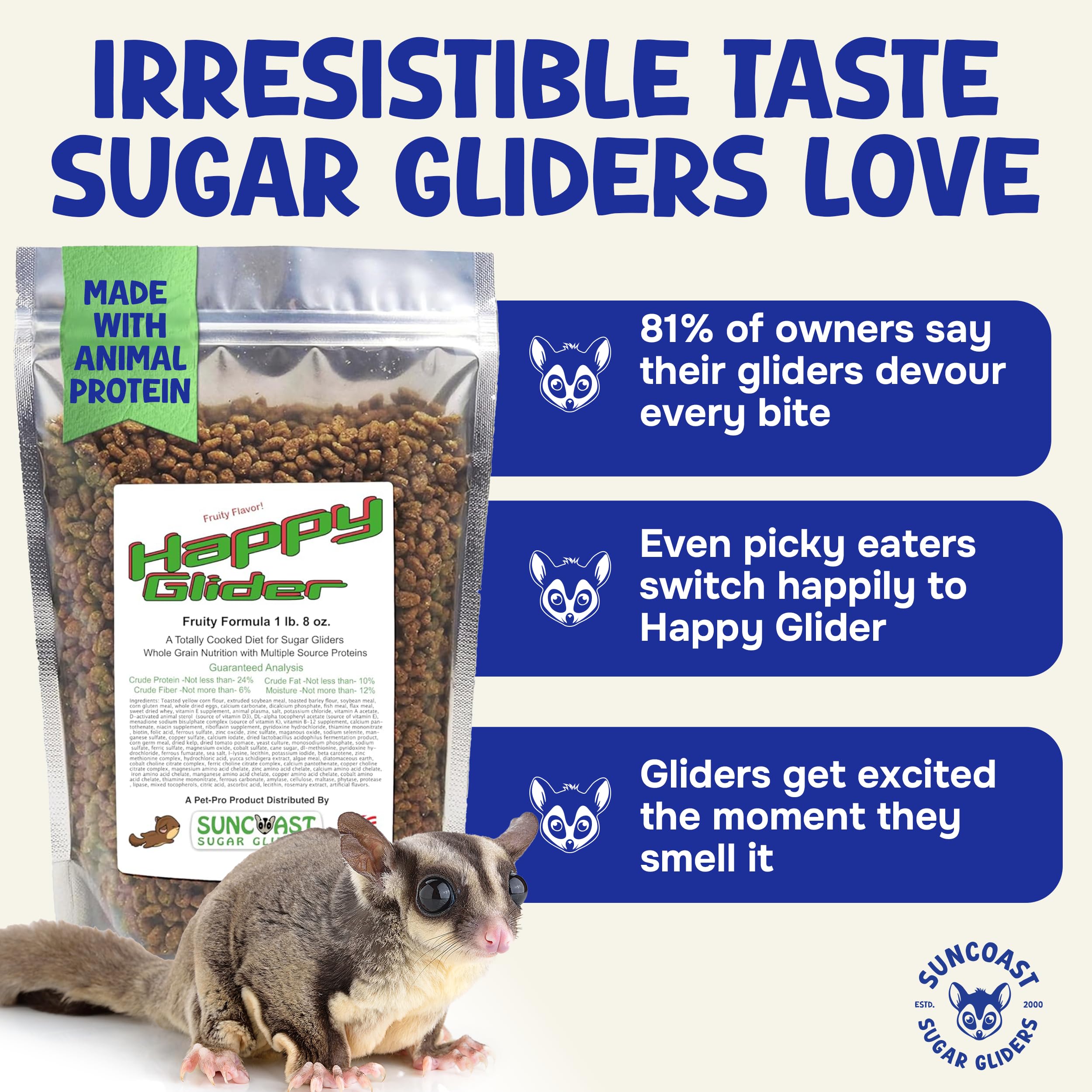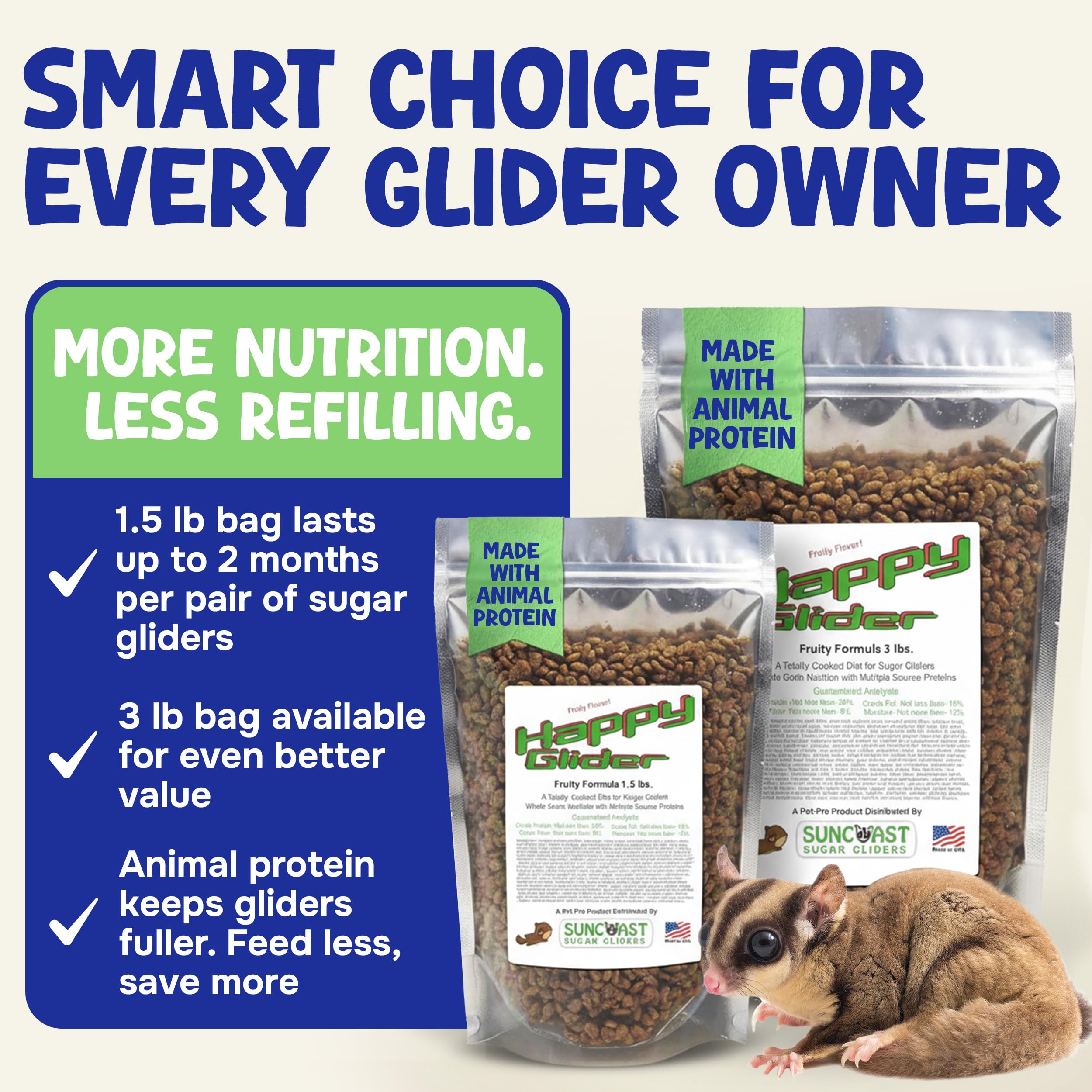 Happy Glider Premium Sugar Glider Food - High Protein, Calcium, Vitamins and Minerals, Complete Nutrition for Small Animals and Exotic Pets, 4 Months Supply - Fruity, 3 lbs