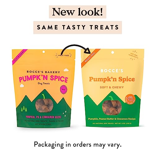 Share this seasonal craze with your pup! Inspired by your favorite latte, Bocce’s Pumpkin Spice flavored dog treats are a fall snack your dog will devour. The perfect soft treats for an autumnal stroll or snuggling inside. These chewy snacks are made with a wheat-free recipe and 100% real food. Ingredients: Oat Flour, Pumpkin, Rolled Oats, Peanut Butter, Coconut Glycerin, Molasses, Flaxseed, Vegetable Oil, Cinnamon, Citric Acid Bocce’s Bakery started in a tiny West Village kitchen with a mixer, an oven, and a scruffy mutt named Bocce with the belief that dogs deserve better. Better treats with fresher, simpler, natural ingredients.