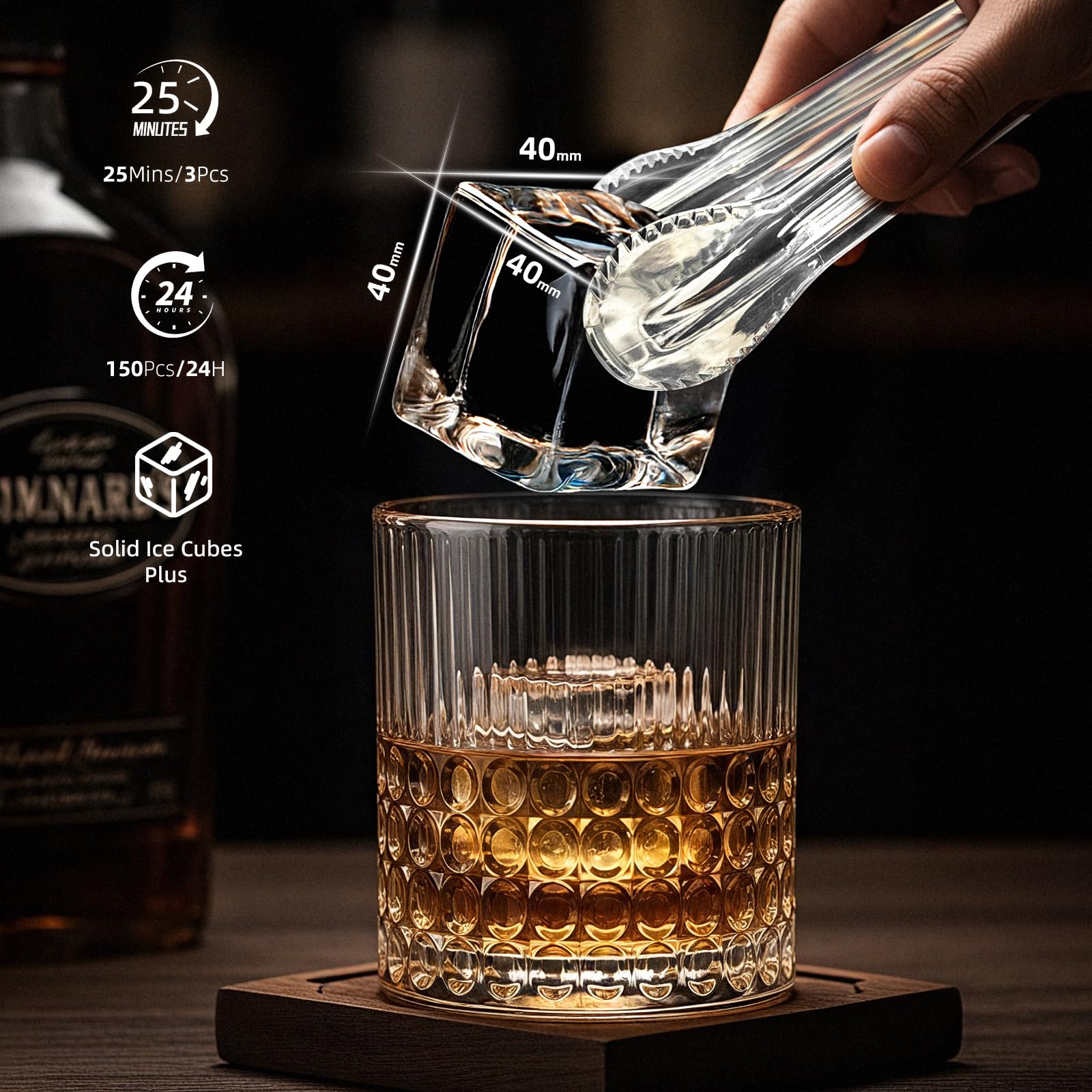 Fast Making ice – Make 3 crystal-clear ice cubes in just 25 minutes or up to 150 premium-quality cubes per day with advanced CrystalFlux Technology, ensuring rapid freezing and ultra-transparent ice.