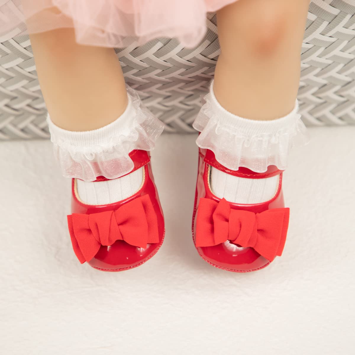 Rubber Sole: The soles of baby ballet shoes have lovely bows and raised patterns of love, which play an anti-skid sole and can protect the baby from falling during daily activities. The soft rubber sole is conducive to the baby's feet touching the ground naturally, and is conducive to safe growth and walking