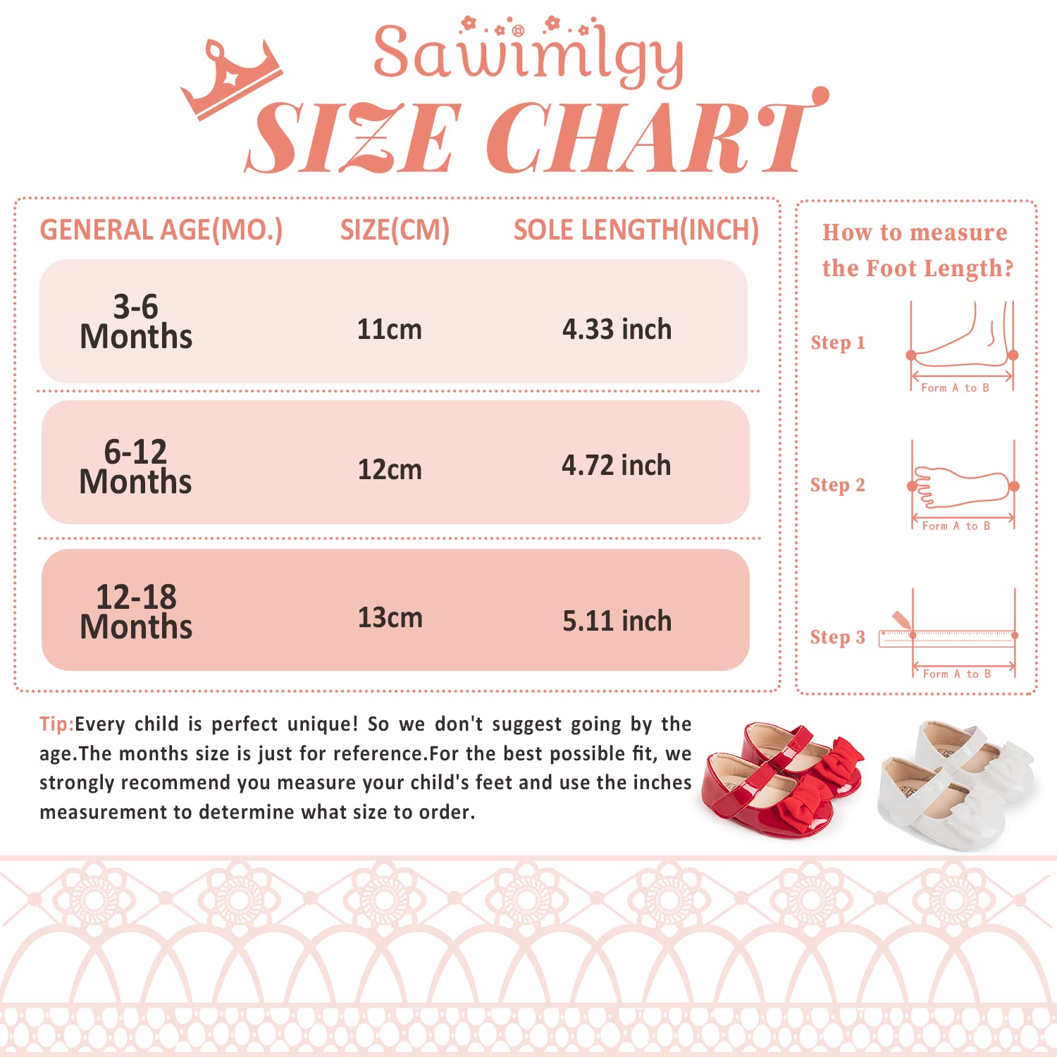 Size Tips: We provide general age recommendations for each of our sizes, but every baby is the unique. So we don't suggest you just going by the age. Please measure baby's actual foot length to choose the best fit shoe. If your little girl have a wider feet, please buy it size larger. Thanks