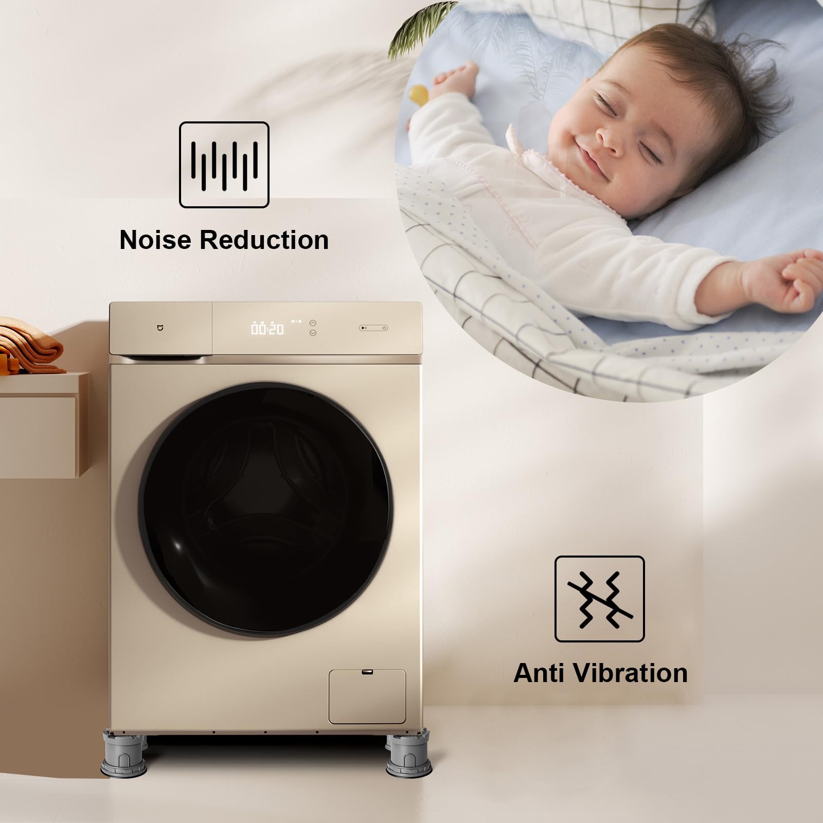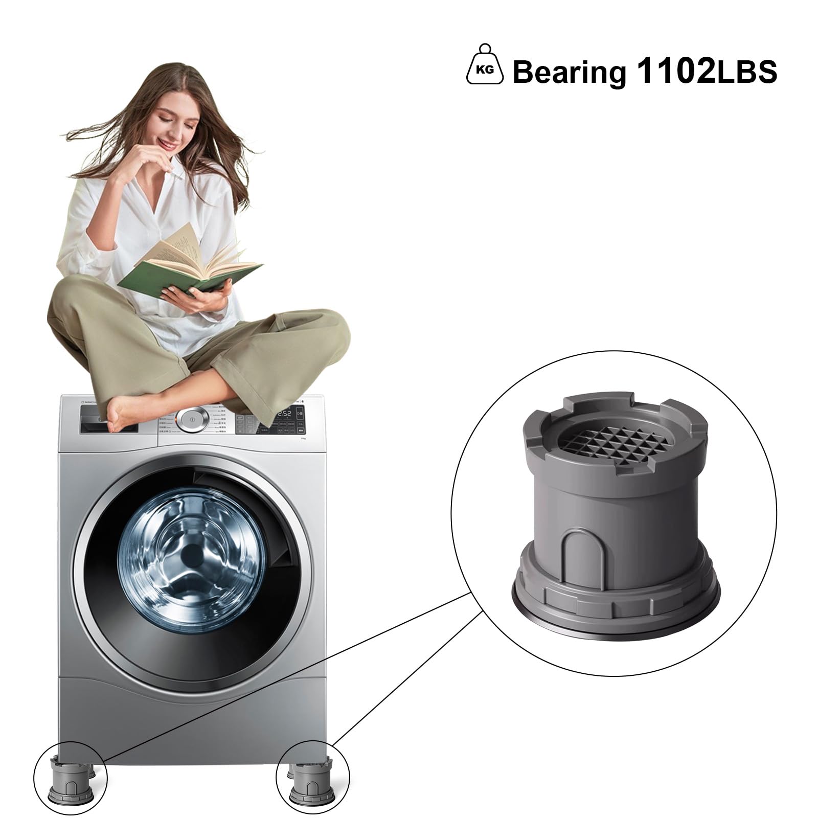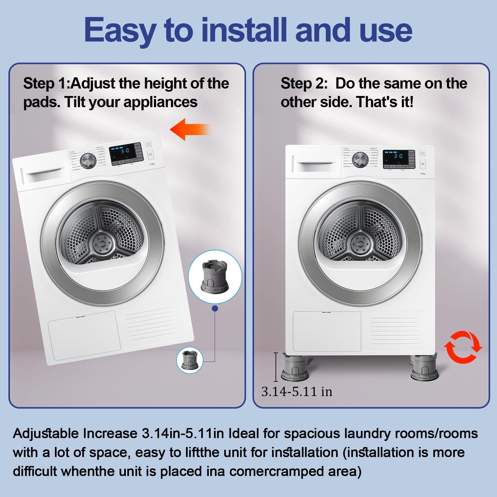 Wide Application: Shock and noise-canceling washing machine support anti-vibration pads can be used not only for washing machines and dryer but also for household appliances, beds, sofas, table legs, chair legs, closet legs, sofa legs, ncrease the height of the appliance and furniture to prevent moisture and make cleaning easier.