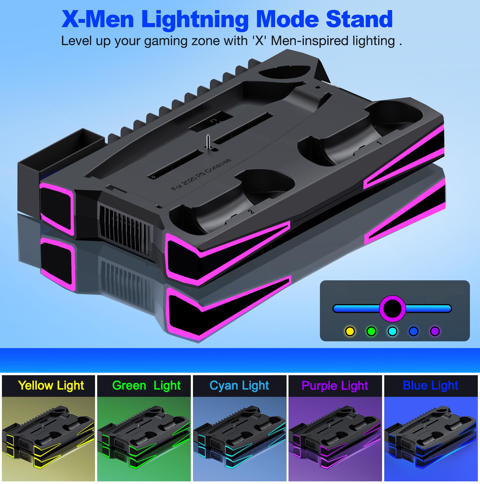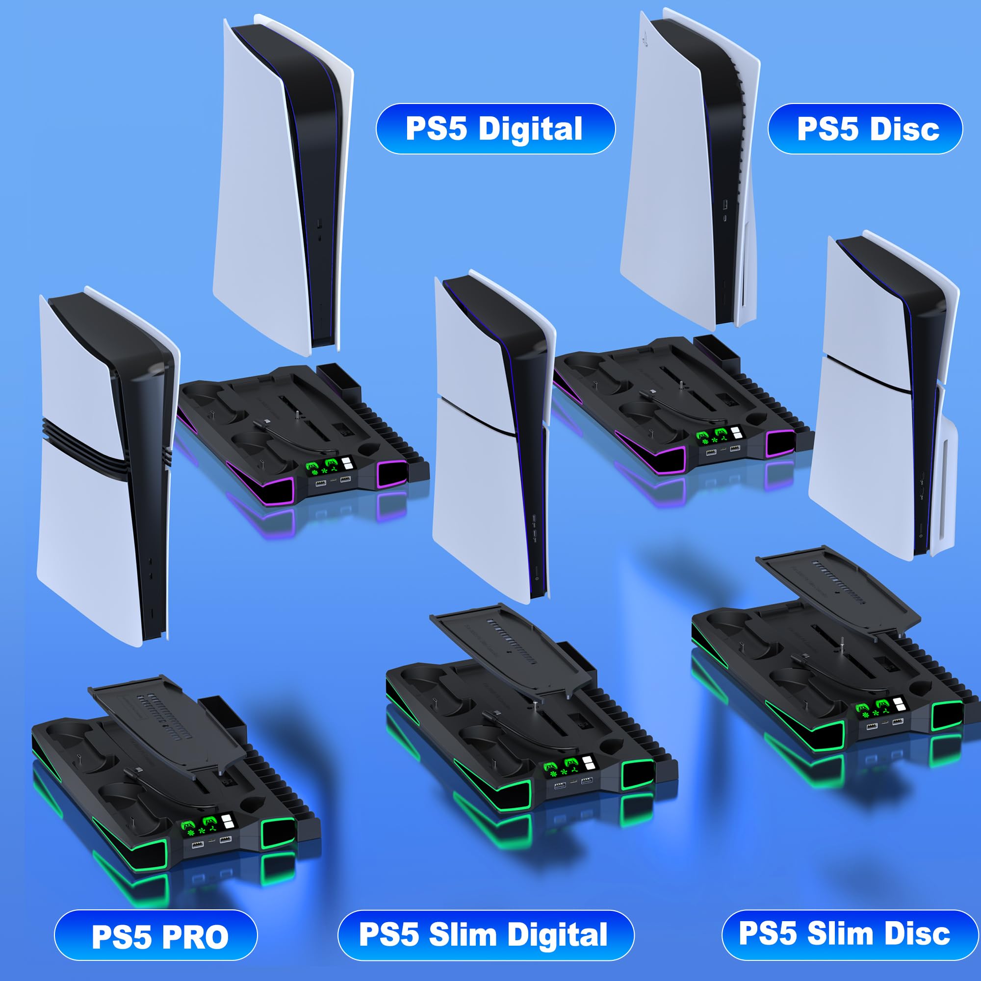 for PS5 Stand Cooling Station for PS5/Slim Console, for PS5 Accessories Vertical Stand with Dual Controller Charger Incl.3 Levels Cooling Fan,Colorful Light for playstation 3 game
