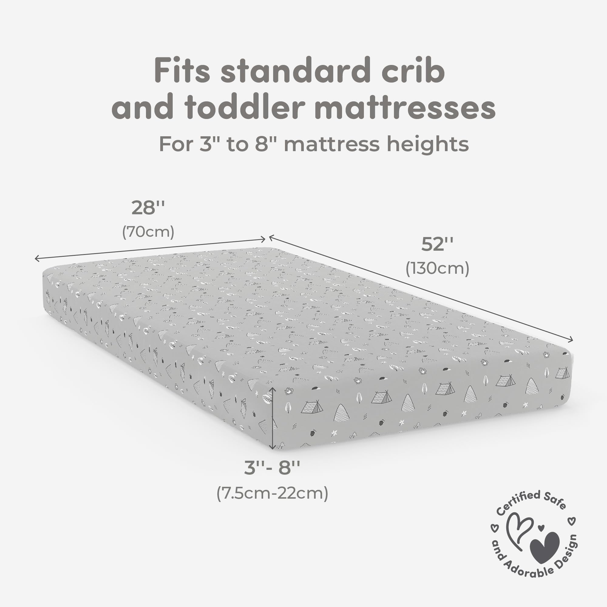 Perfect Fit for All Crib Sizes: Each set includes two crib sheets that are designed to perfectly fit standard crib mattresses (52” x 28”) as well as mini cribs and toddler beds. The sheets fit mattresses with a height of 3” to 8”, ensuring a snug and secure fit.