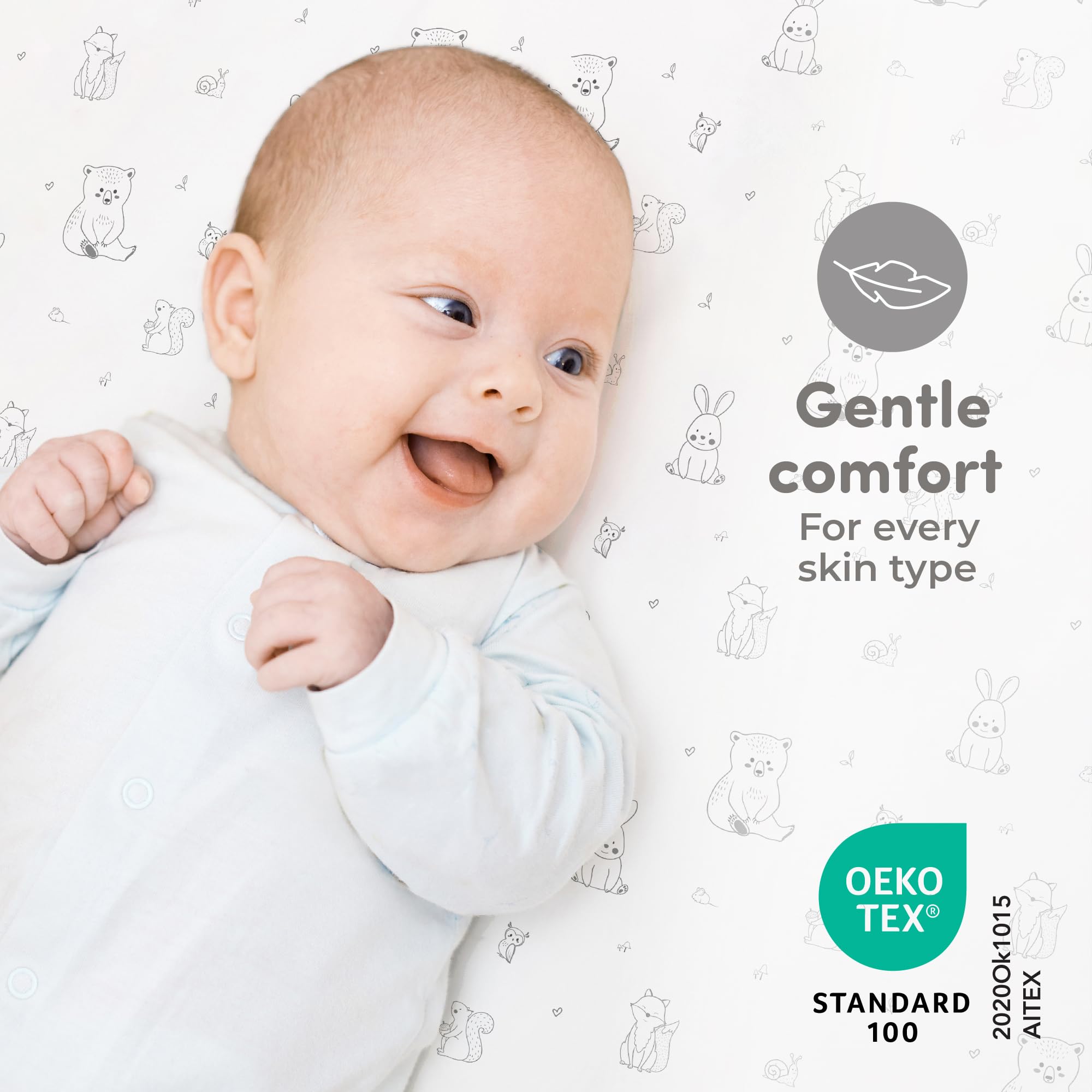Soft & Gentle on Baby’s Skin: Crafted from 100% premium jersey cotton, these crib sheets offer a soft and breathable surface, ideal for keeping your baby comfortable during sleep. The fabric is gentle on even the most sensitive skin, making it perfect for newborns and toddlers alike.