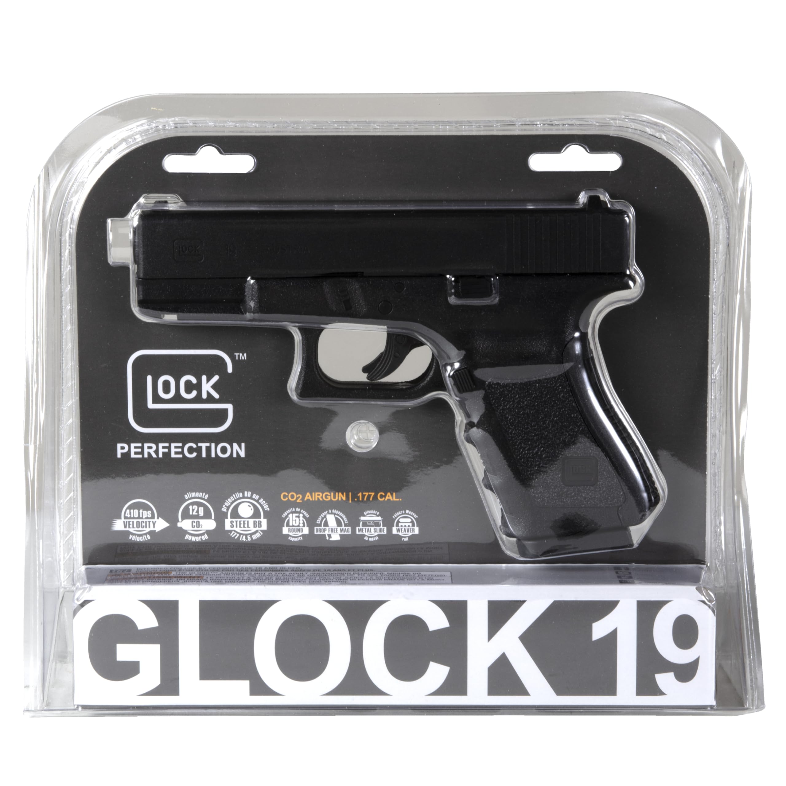 The Glock 19 .177 caliber air pistol is ideal for a more versatile role because of its reduced dimensions when compared to the standard sized option. It is compact and handy, with the unmistakable look of the original and plenty of power. In spite of its relatively small length of 7.25 inches, it shoots .177 caliber steel BBs with a velocity of up to 410 FPS and weighs a satisfying 25.6 ounces. In true Umarex form, it has a metal slide and a trigger safety. Officially licensed product of Glock.