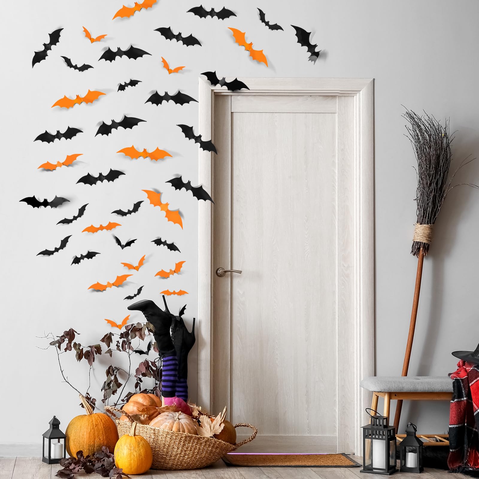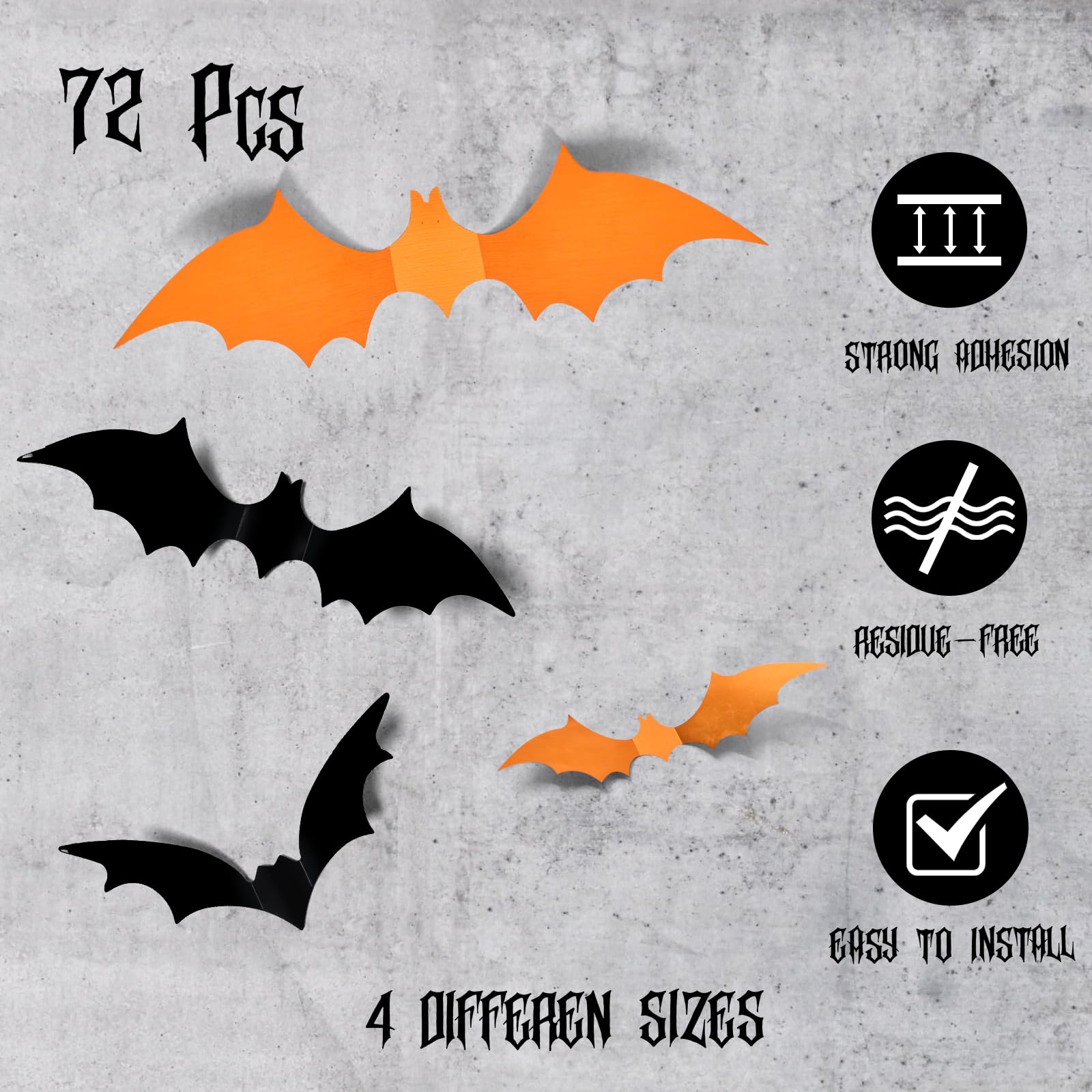 GREAT VARIETY AND STYLES: This set includes 72 bat wall decals in 4 different shapes and sizes, available in black and orange. Offering great value, these bats will meet all your decorating needs! Stick them on walls, windows, doors, stairs, tables, refrigerators, and more. They’re perfect for any dry, smooth surface in your living room, bedroom, bathroom, and beyond.