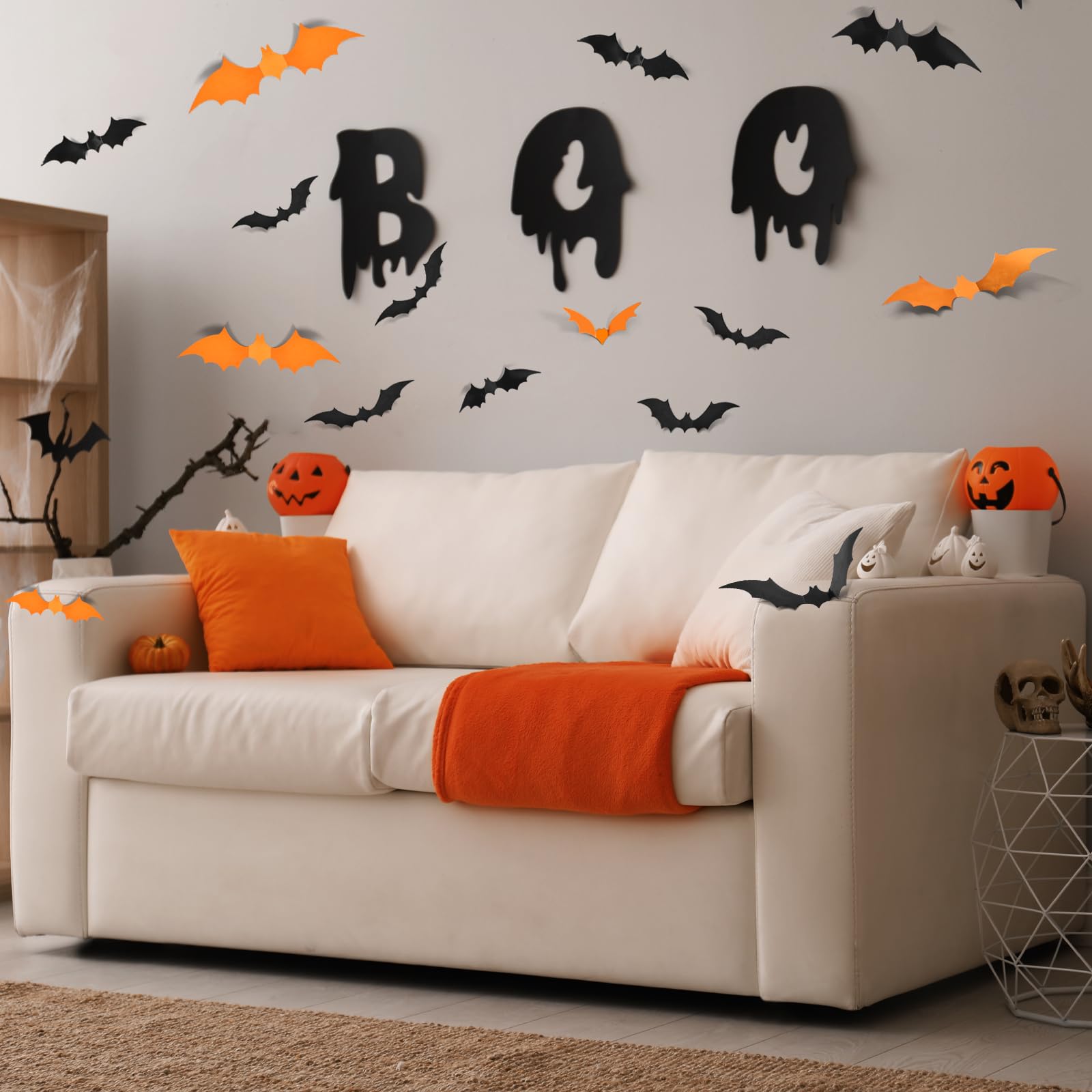 SPOOKY BAT STICKERS: These black orange and purple PVC bat stickers look incredibly realistic, adding a vivid and frightening touch to your Halloween wall décor. Perfect for Halloween door and window decorations, Halloween parties, and ghost festivals, they bring a chilling atmosphere to your festivities. Let your imagination run wild and scare your neighbors and friends!