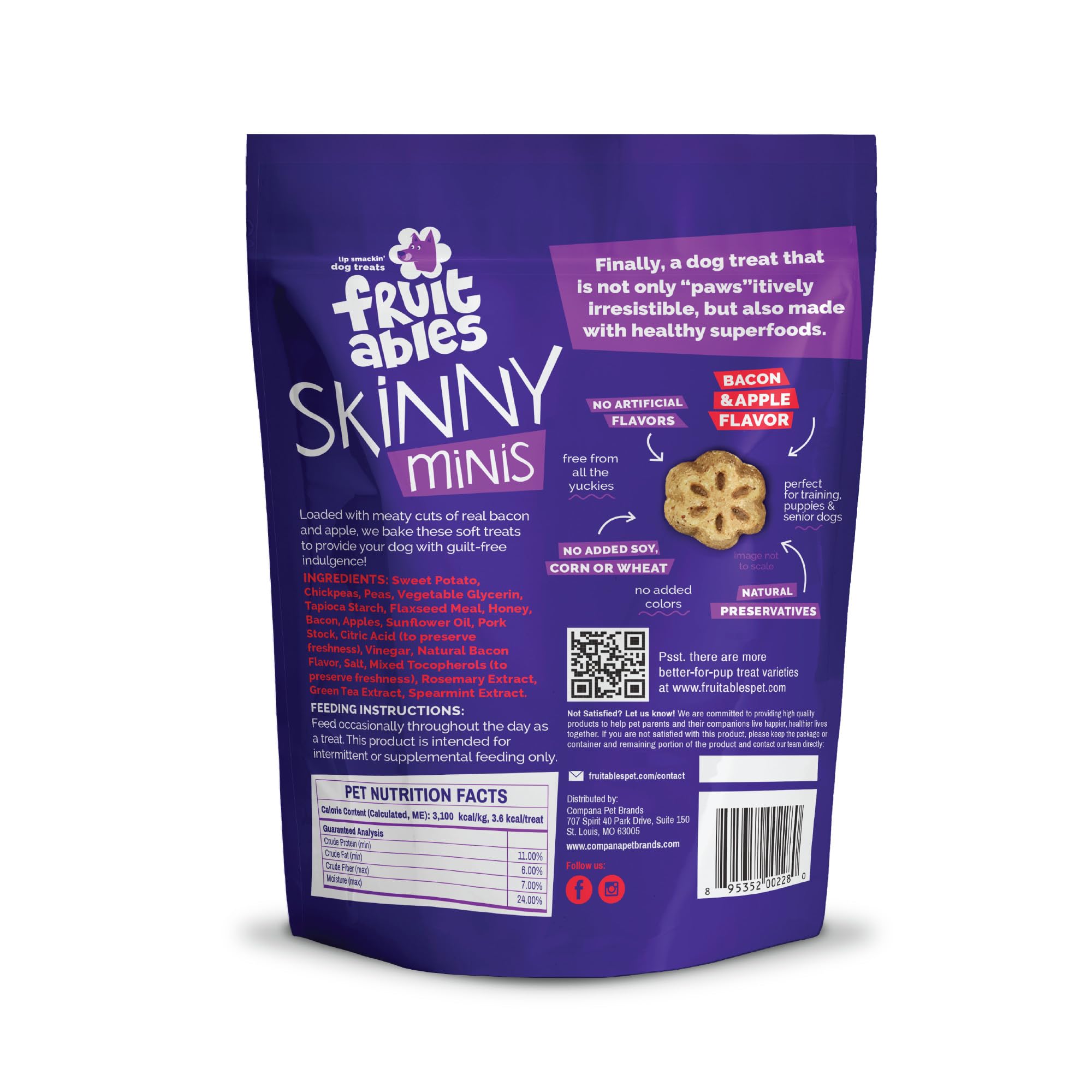 Give your dog a treat that’s not only “paws”itively irresistible but also made for health-conscious pet owners who want only the best! Fruitables Skinny Minis are low-calorie dog training treats specially designed for effective dog training sessions. Crafted with real sweet potato for dogs and a blend of superfoods like apples, these training treats for dogs offer a deliciously fruity flavor that even the pickiest pups love. Each soft and chewy bite is less than 4 calories, making them ideal for frequent rewards without adding unnecessary weight, keeping your dog healthy and happy. These fruit dog treats are perfect for all sizes, from dog treats for small dogs to dog treats for medium dogs, providing a bite-sized reward that satisfies. Fruitables dog treats are made with high-quality, natural ingredients and contain no wheat, corn, or soy, making them a fantastic choice for dogs with sensitivities. With their low-calorie content and satisfying flavors, they’re a healthier dog treat option for everyday training or as a zero-guilt reward. Proudly made in the USA with carefully sourced ingredients, these Skinny Minis offer quality you can trust. Whether you’re using them as dog training treats or simply indulging your furry friend with a tasty snack, you can feel confident knowing you’re giving them a nutritious treat with natural goodness. Support your dog’s active lifestyle and reward them with these irresistibly flavorful, healthy dog treats. Perfect for pet owners looking for pumpkin dog treats that help with training and offer peace of mind with every bite!