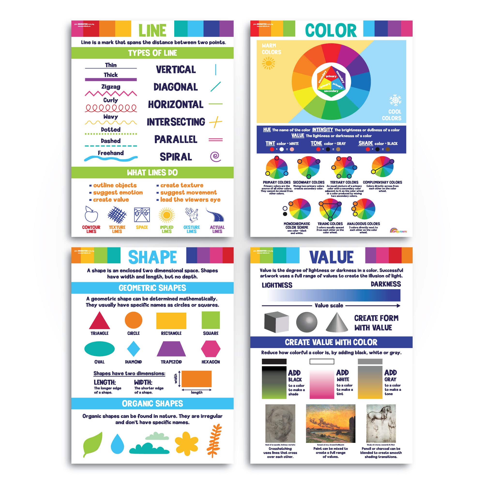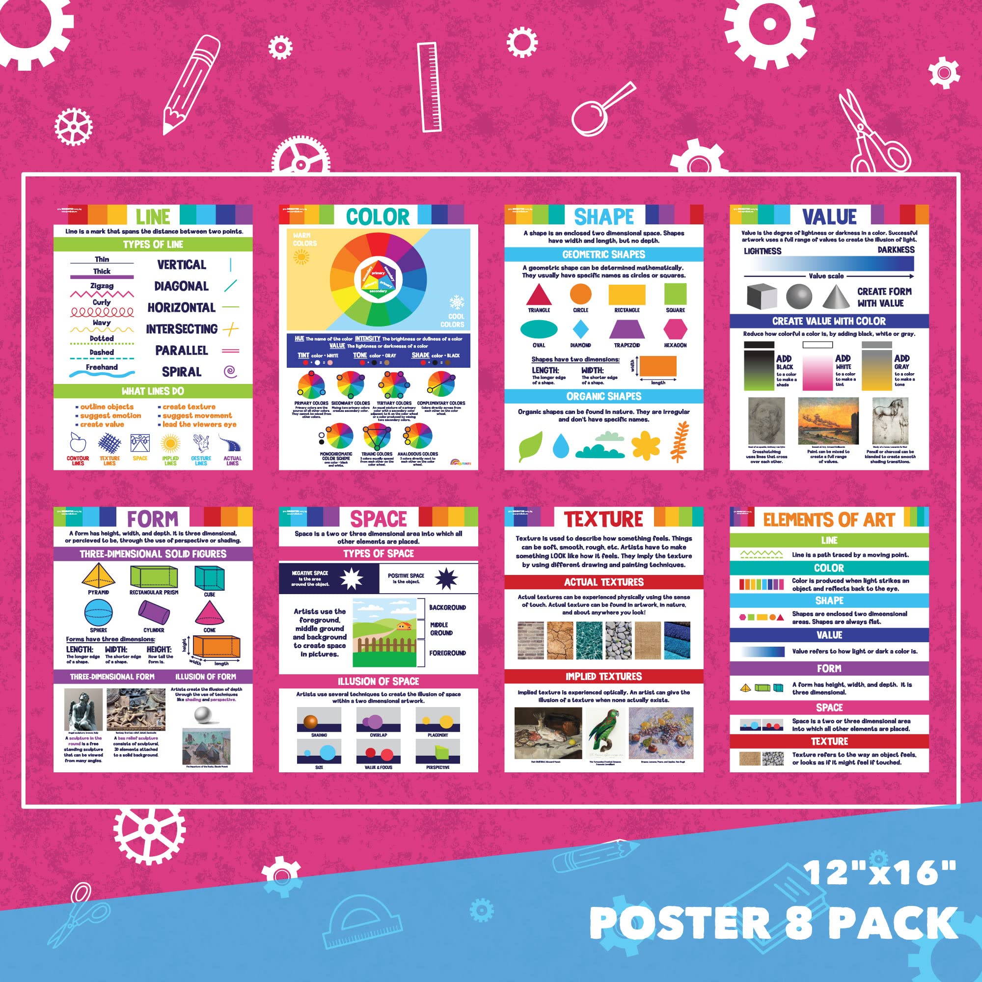 Sproutbrite Art Posters Elements of Art Principles of Design Classroom Decorations - Elementary, Middle School, High School (Elements of Art)