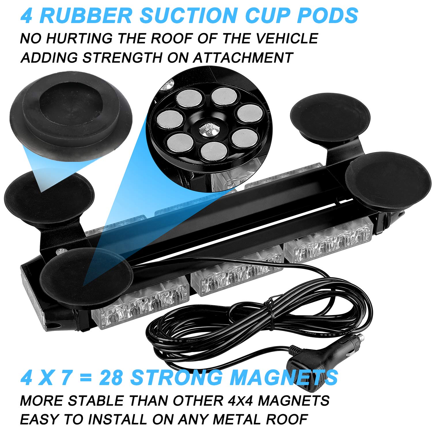 EASY TO INSTALL -- 4 Rubber suction cups + 28 magnets, place on any metal exterior.Rubber suction cups between the magnets and roof making it with added strength on attachment,and prevents scratching you vehicle.You can remove the magnetic base and install it permanently. 16.4FT Long heavy duty cable,Convenient for wiring.