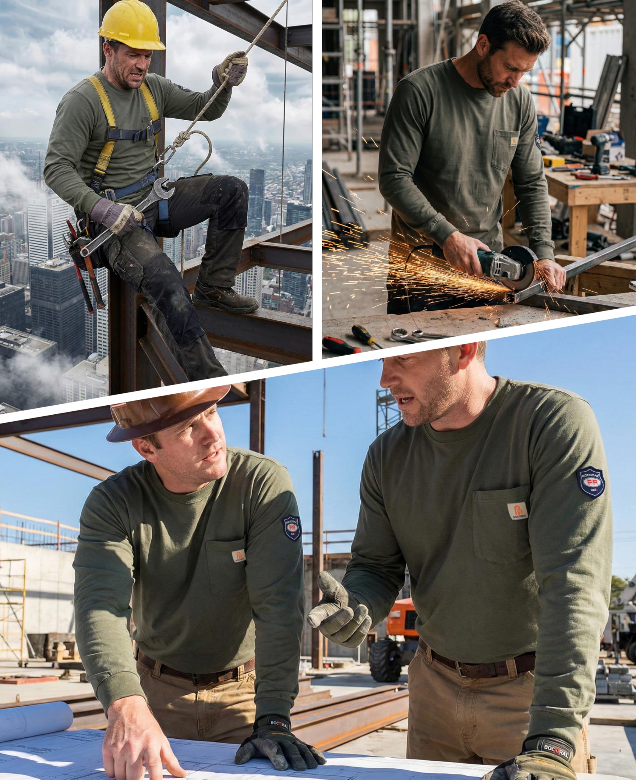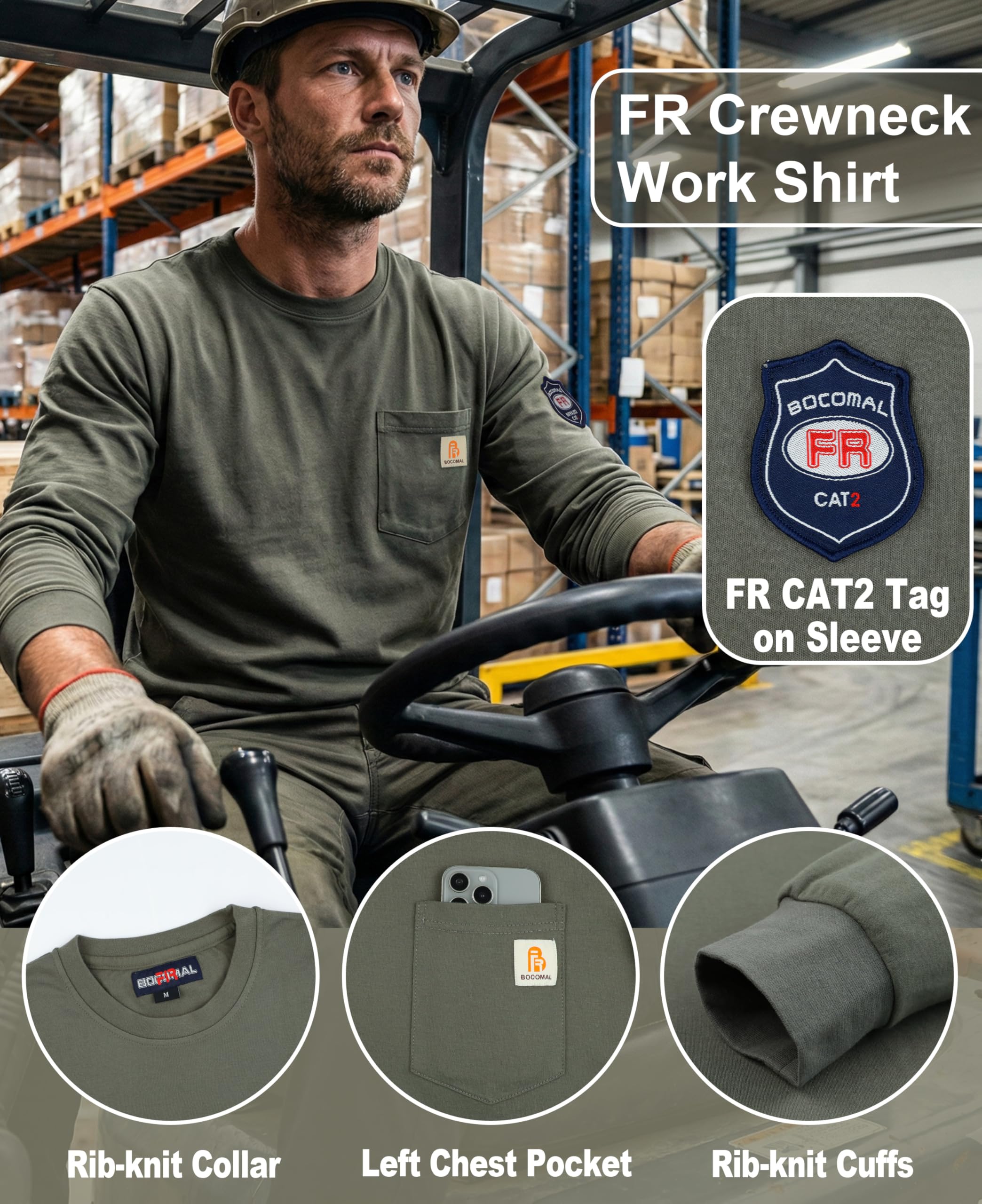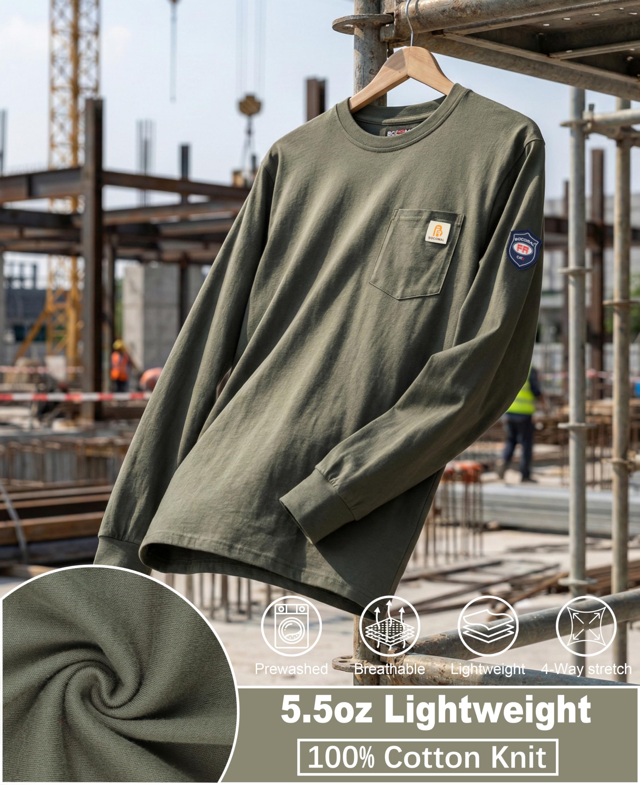 FR MATRIALS LIGHTWEIGHT:5.5oz knit featured flame resistant treated cotton,stitched with FR armid threads.Eyecatch FR Tag on pocket.we have included a small sample inside the package for customers to try out the FR properties firsthand.