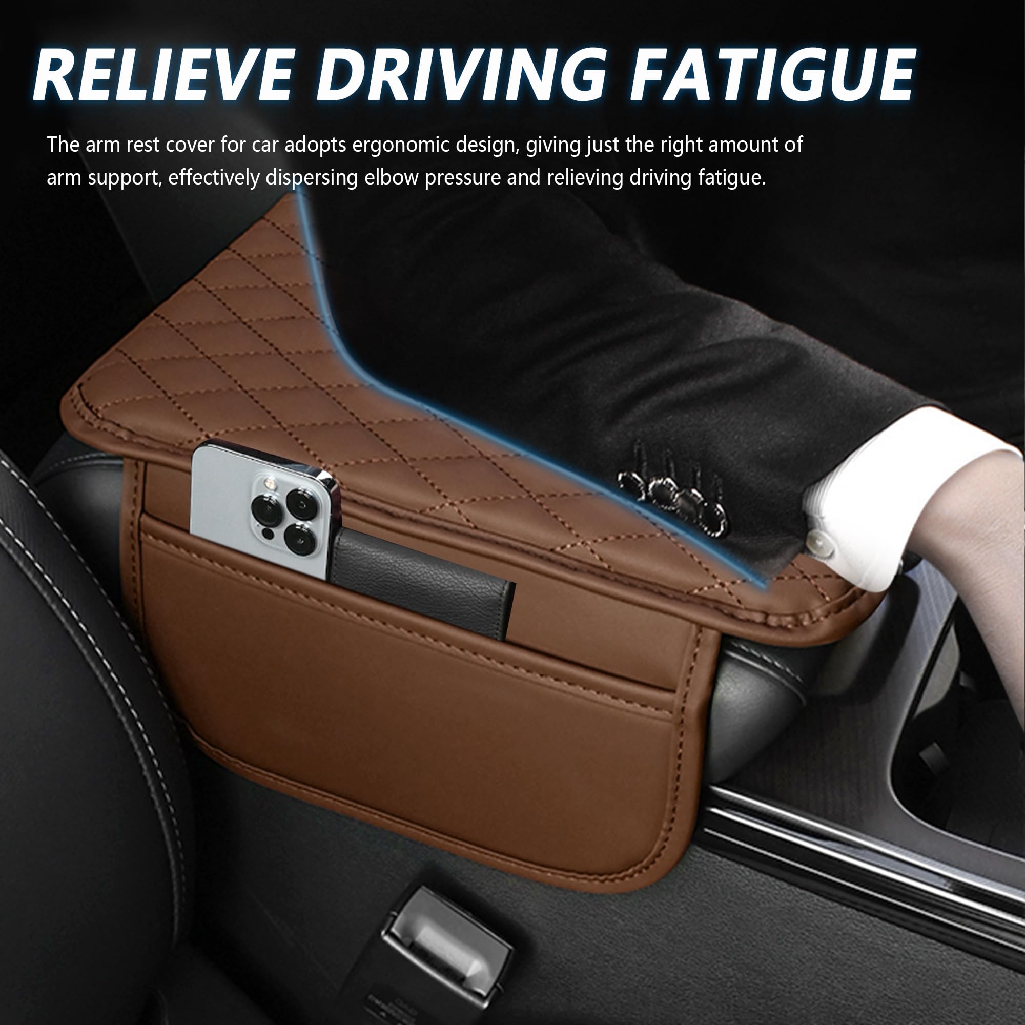 🔰 RELIEVE DRIVING FATIGUE - The arm rest cover for car adopts ergonomic design, giving just the right amount of arm support, effectively dispersing elbow pressure and relieving driving fatigue. Protect your car's center console from getting dirty or scratched. Especially suitable for long time driving or long distance traveling, bringing you a new experience of relaxation and comfort!
