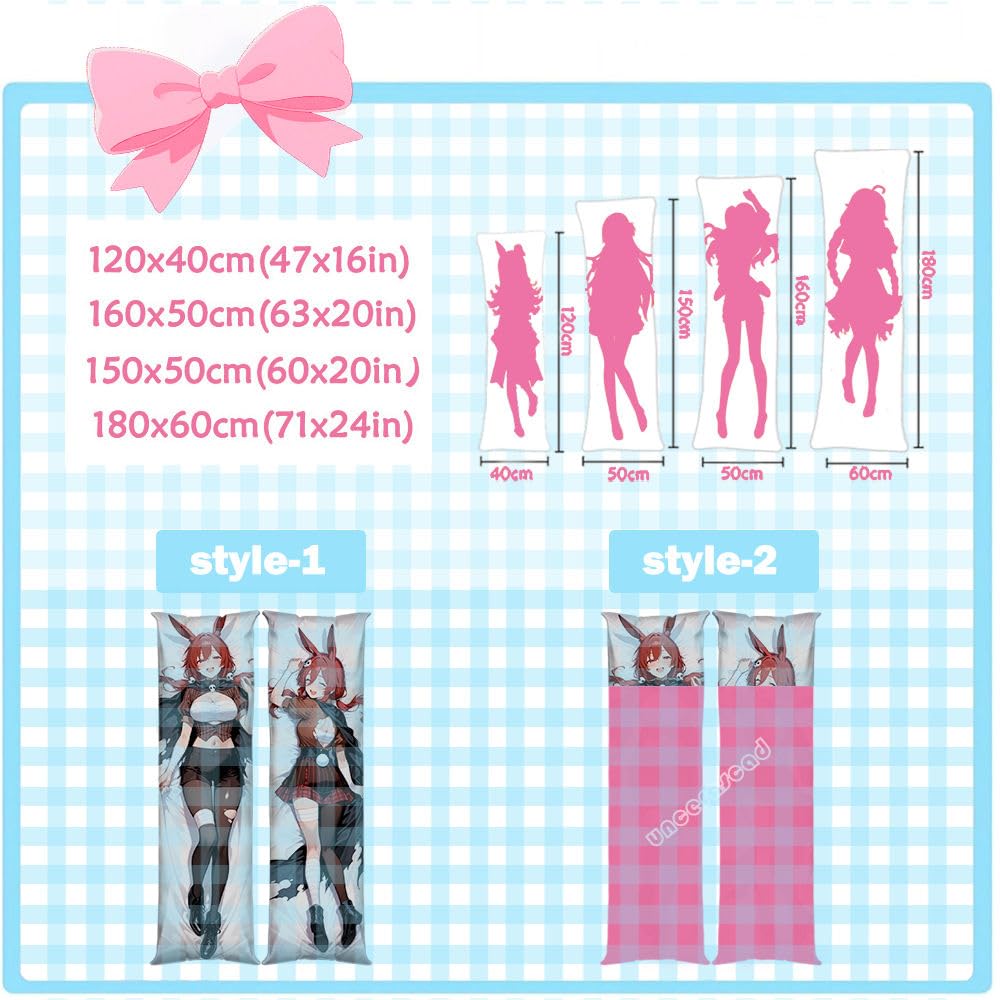 1. Anime body pillowcases offer versatile sizing:40×120cm (16×47") / 50×150cm (20×60") / 50×160cm (20×63") / 60×180cm (24×71"),Note: Listing includes pillow cover only.