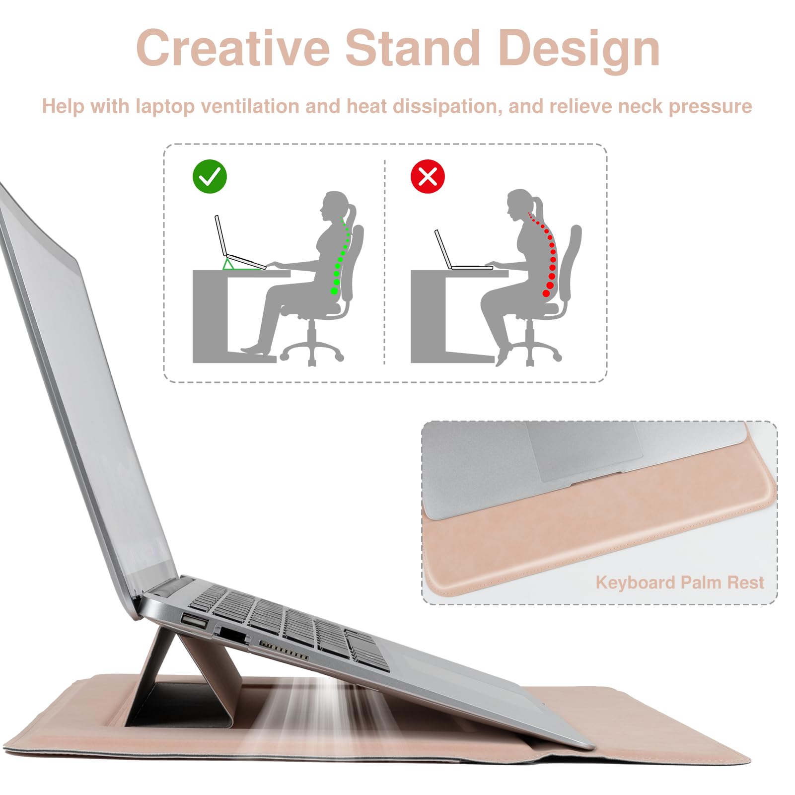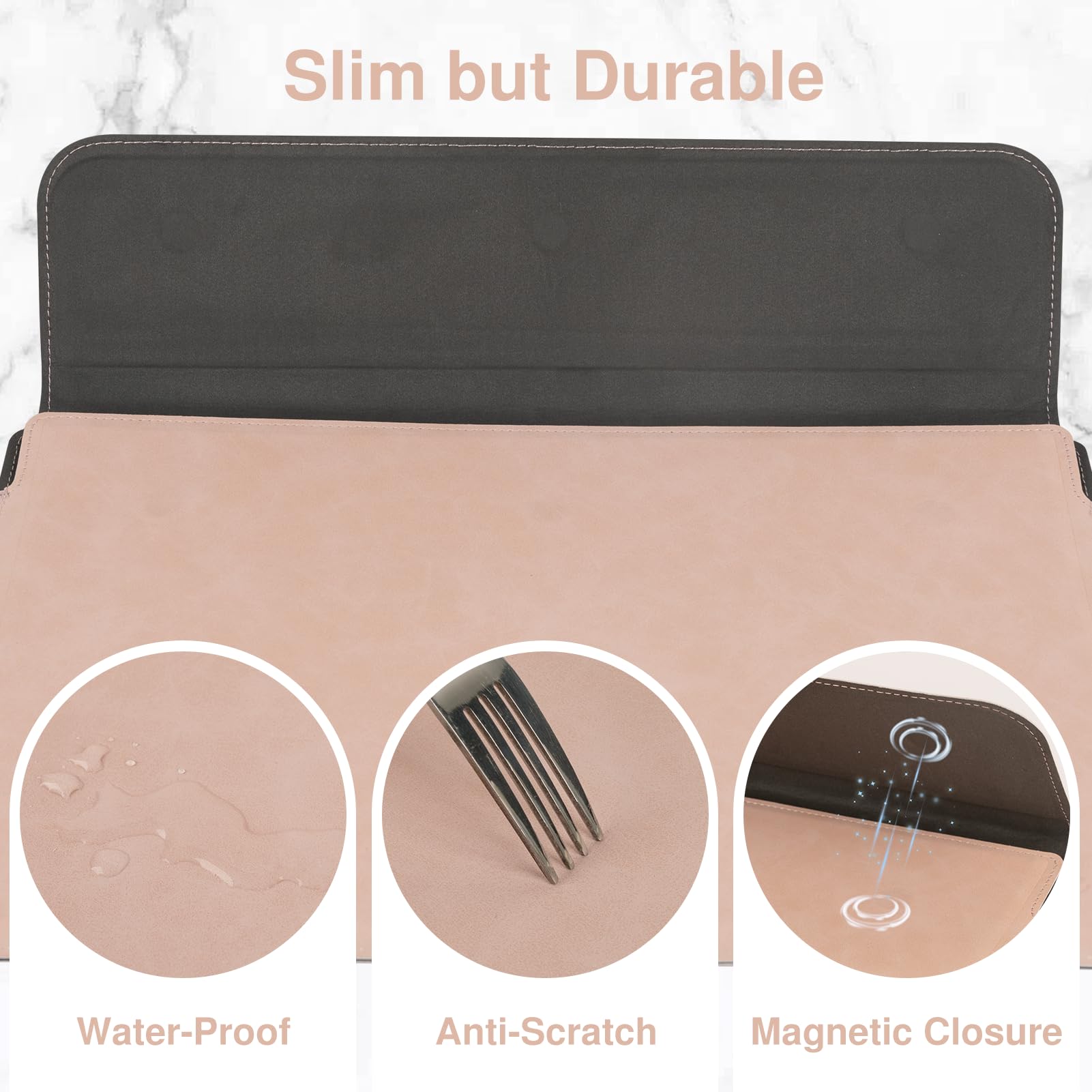 Magnetic Envelope Closure: Sleek envelope design with invisible magnets allows easy access while keeping your laptop secure inside the sleeve without slipping out