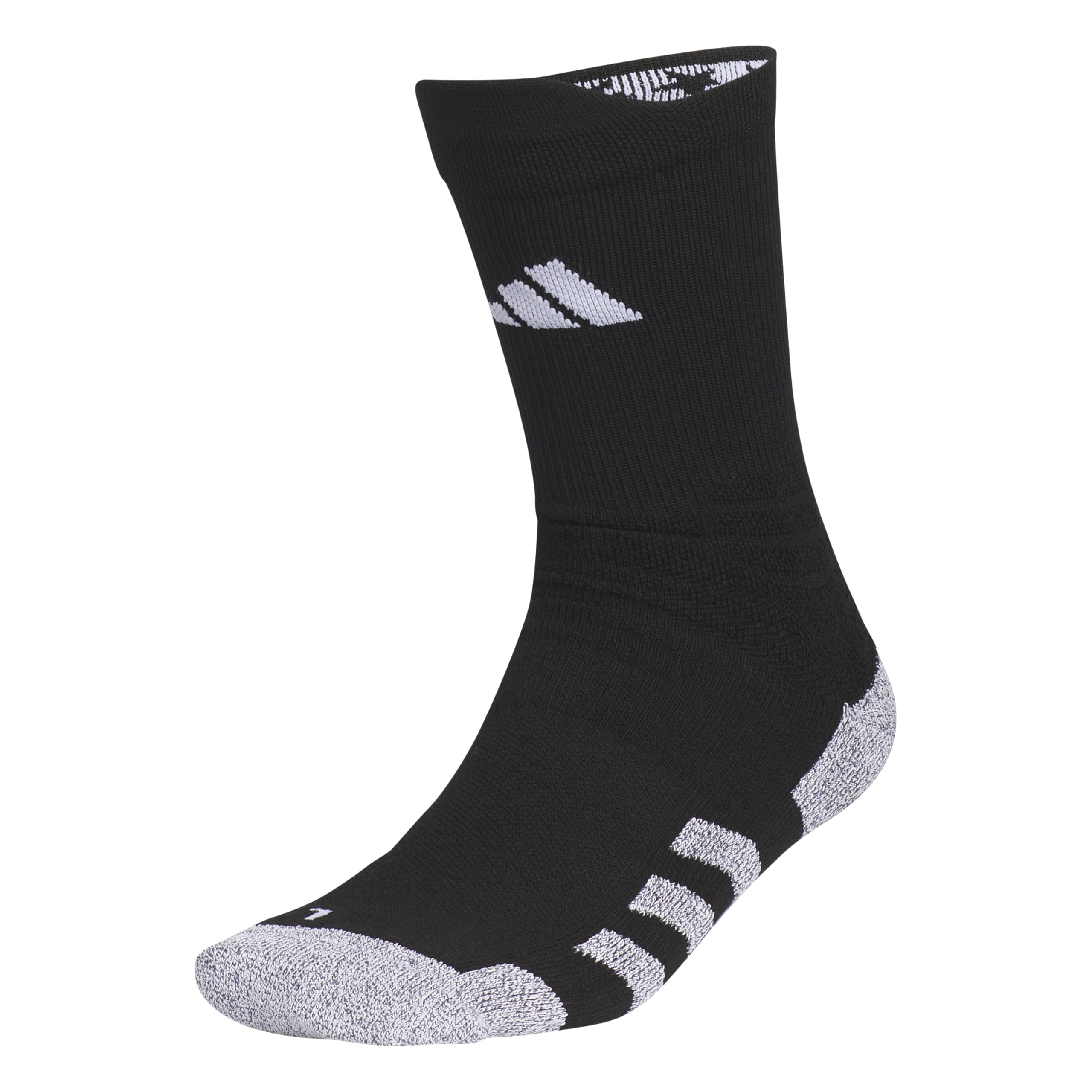 Description The right gear for the job, these adidas football socks help you maximize your game. cushioned pods offer extra comfort and protection. built-in arch and ankle compression adds support for agility and blocking drills.