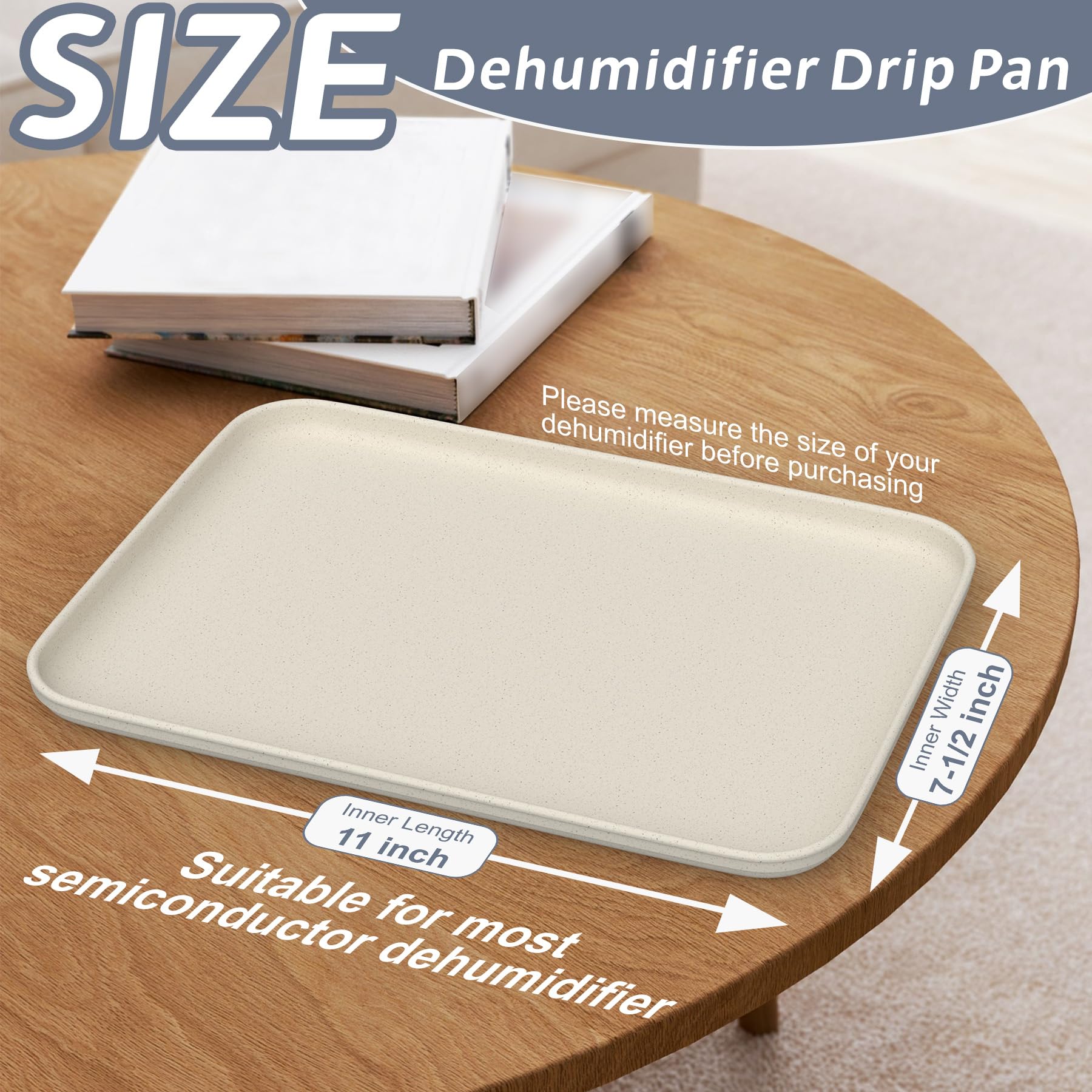 Sgned for Dehumidifiers】 Our dehumidifier drain pan measures 11inch x 7-1/2inch, suitable for most small semiconductor dehumidifiers.The drain pan effectively prevents water leakage from dehumidifiers placed in living rooms, bedrooms, bathrooms, etc. Please confirm the size of your dehumidifier before purchasing.
