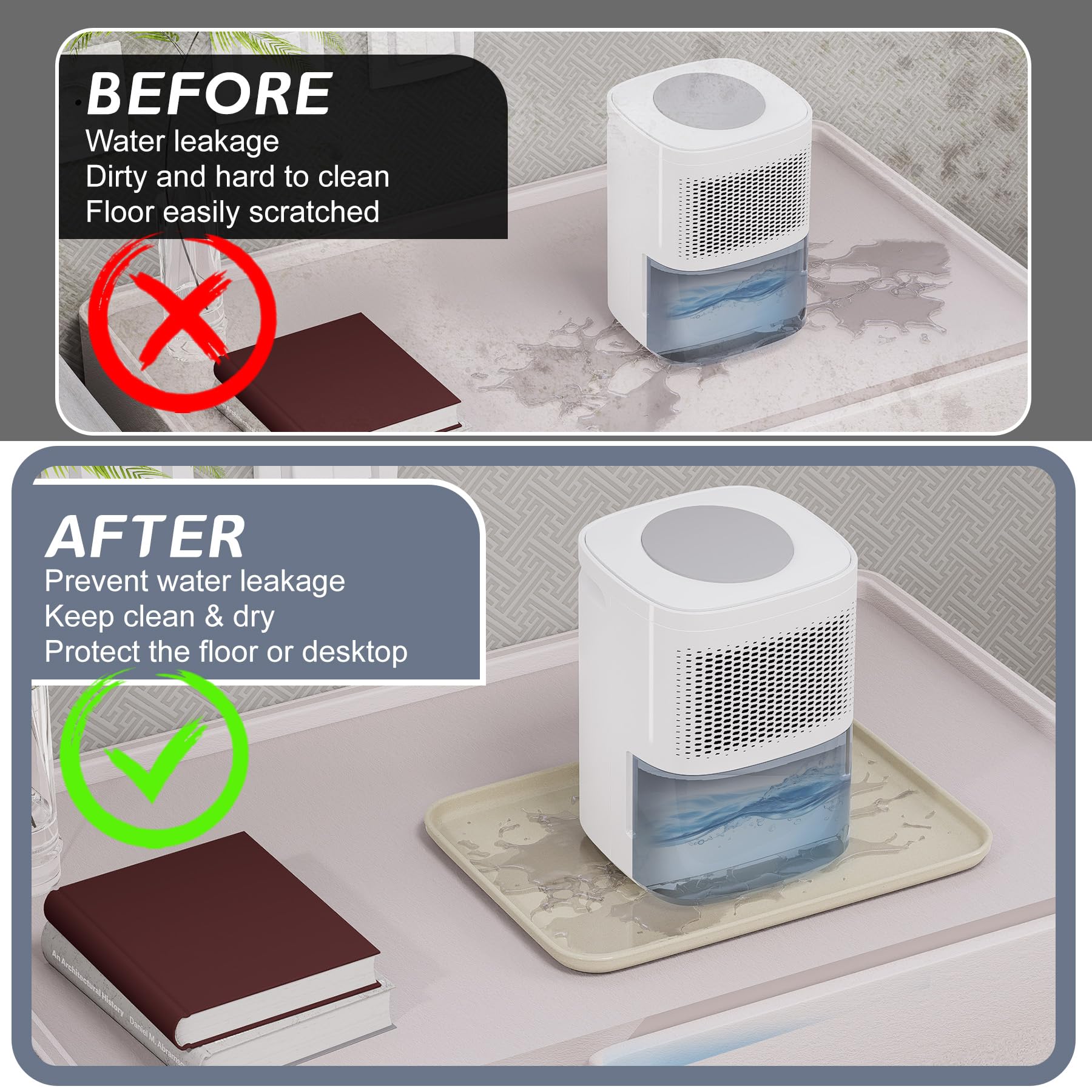 【Efficient Water Capacity】With special edge design, our waterproof dehumidifier mat can easily hold a large amount of water. This dehumidifier tray effectively prevents spills and splashes, further protecting your floor, carpet, or tabletop from water soaking.