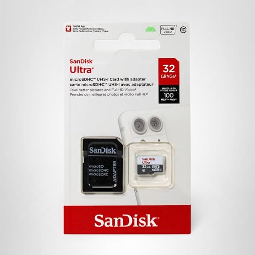 The 32GB SanDisk Ultra microSDHC UHS-I Memory Card works with any device that has a microSDHC card slot