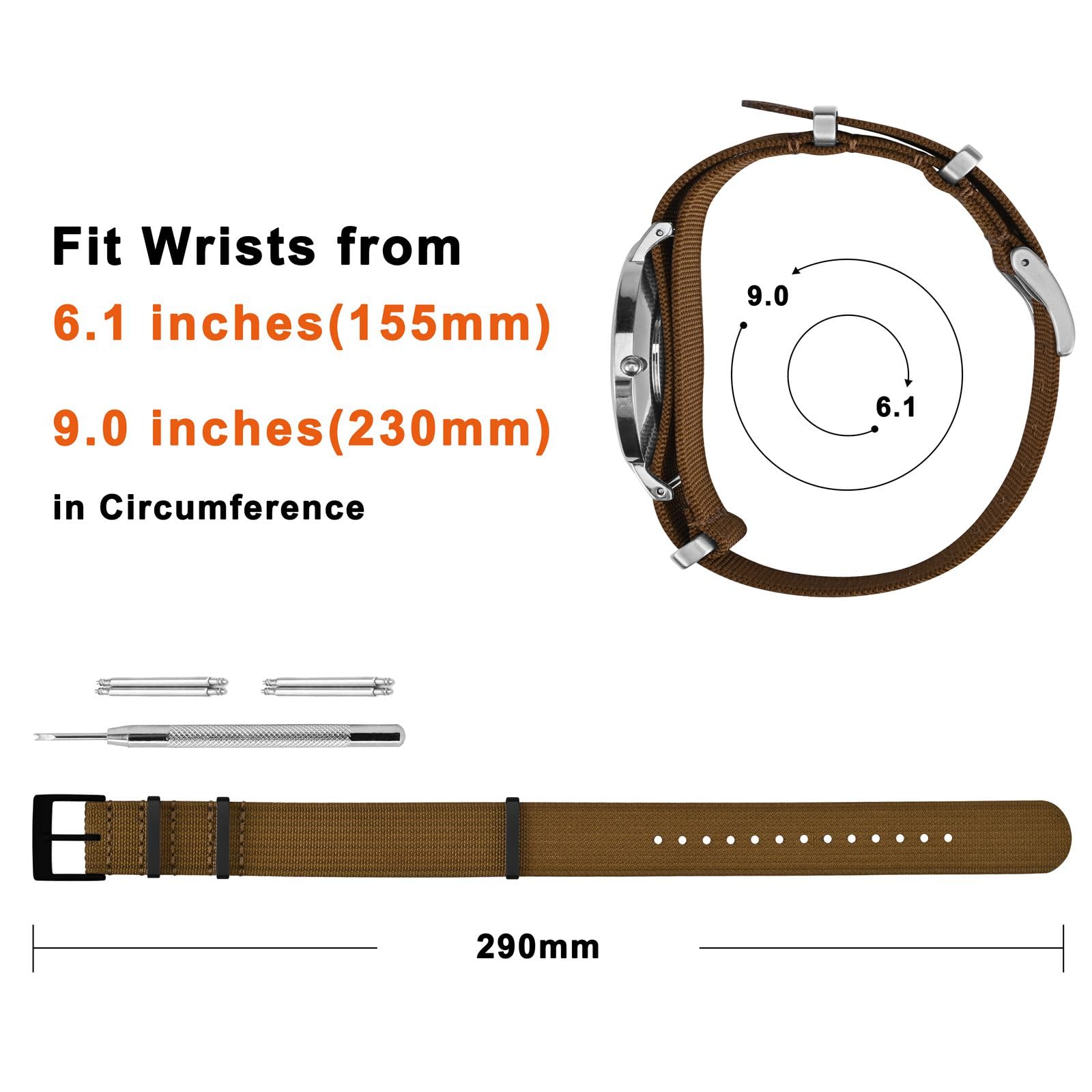 Straps are available in 18mm, 20mm, 22mm widths. To determine the proper width for your watch, use a metric ruler to measure the ‘lug width’ (the point on the watch head where the band attaches)