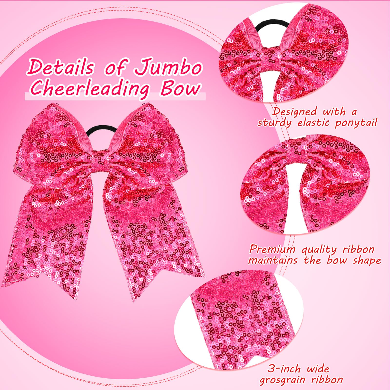 Stretchy and stable: the cheer hair bows are made of a 3-inch wide grosgrain ribbon with a sturdy elastic rubber hair band, covered with fabric for delicate appearance, also can hold your hair firmly in place