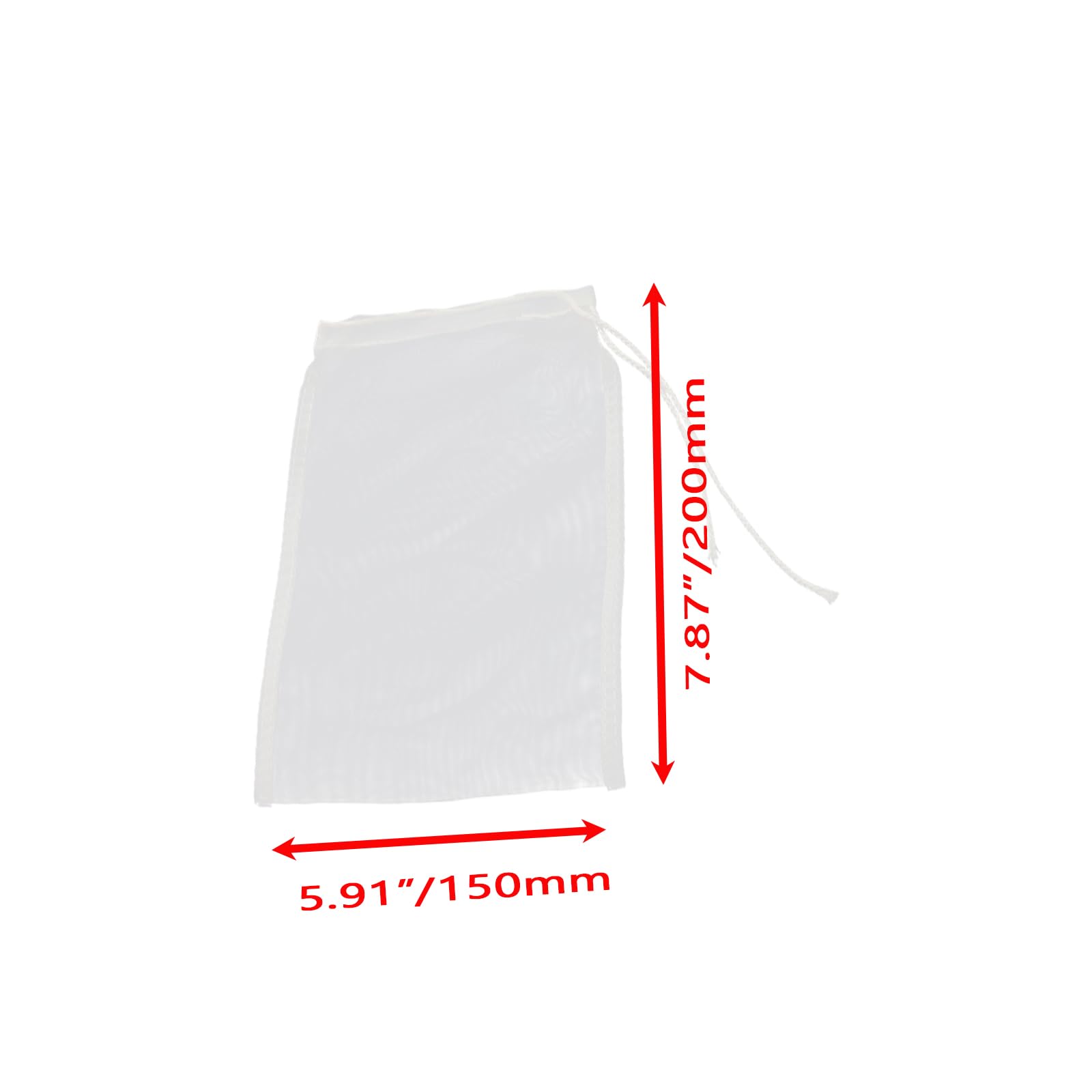 Material These filter bags are made of nylon and the sturdy construction and high quality stitching make the filters strong and durable. Size 5.91" x 7.87" Package Included 15 pcs Filter Bags Sturdy construction and heavy-duty stitching make these fine filter paper bags strong and durable for multiple washings and reuse. The small aquarium filter bag is designed with a drawing rope, after filling the filter bag, you only need to tie the two sides of the rope, you don't need to worry about the filter material leaking out; the rope design also helps you to better fix the filter bag in a certain place, to achieve a good fixing effect.