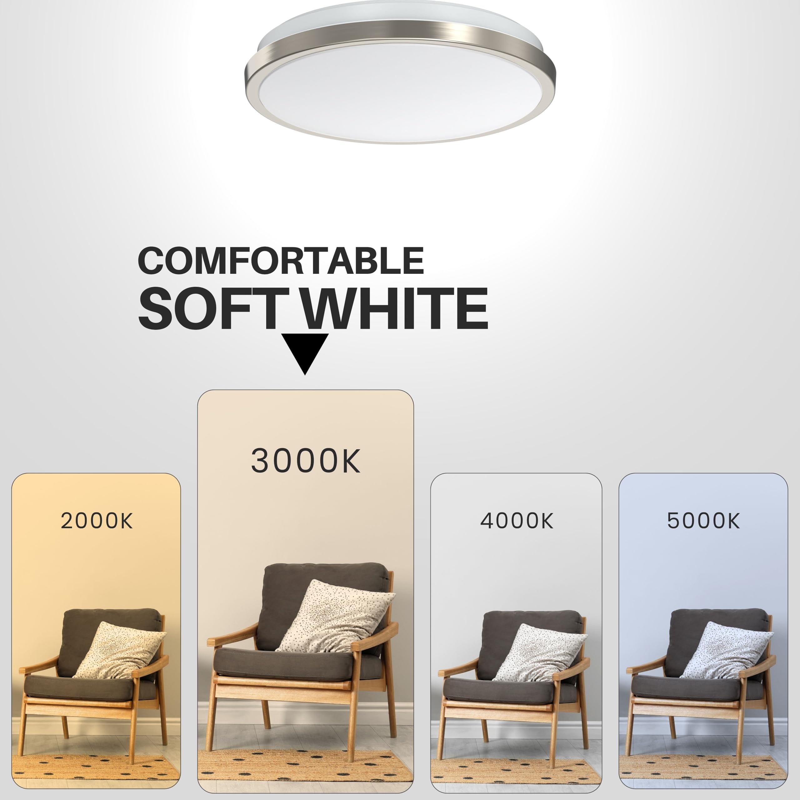 WELL-DESIGNED: Has a sleek brushed nickel finish with a durable 10-inch diameter frame. The modern style, combined with even light distribution, makes this light a perfect addition to any room in the home