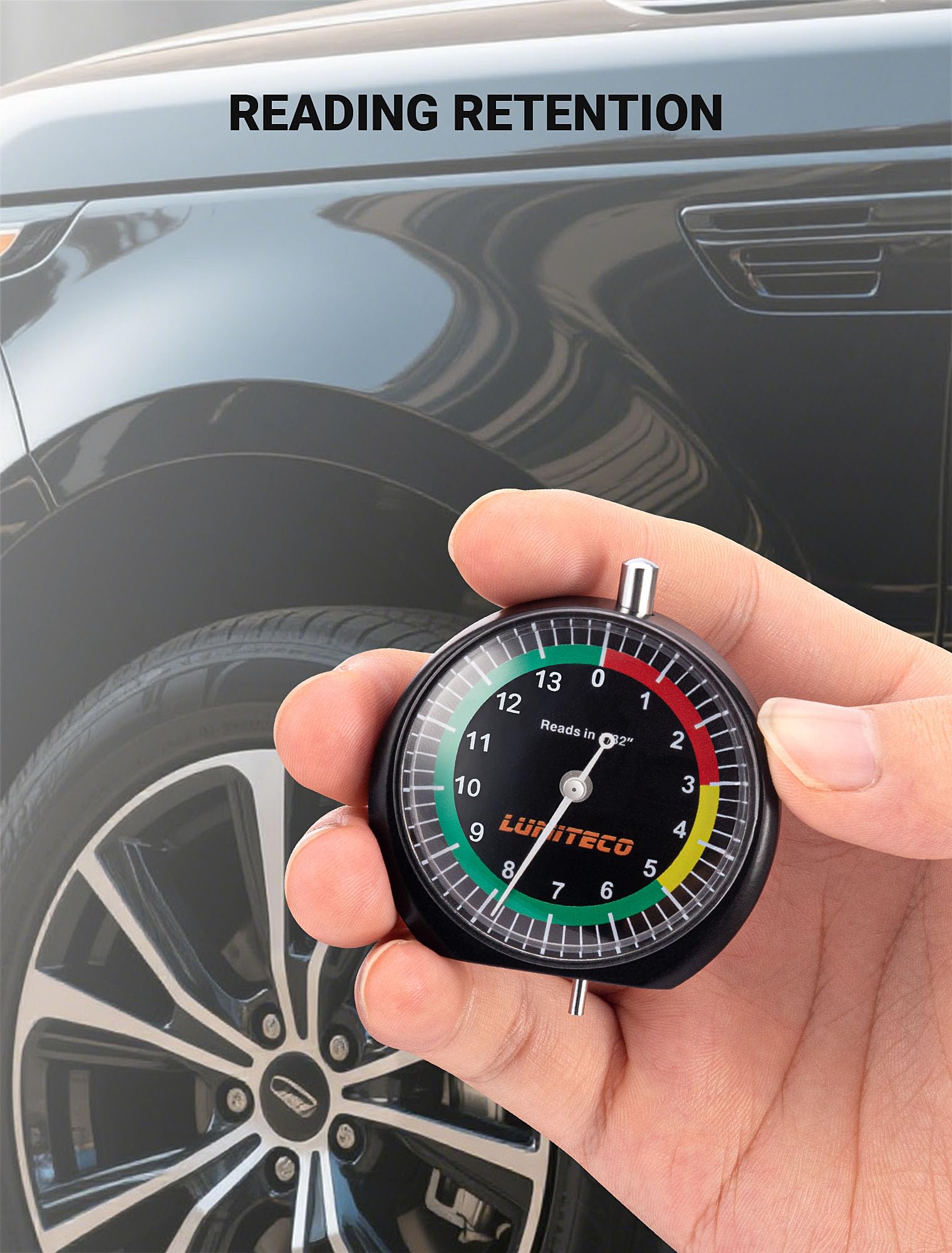 READING RETENTION: The gauge retains the tire tread depth reading on the dial after taking the measurement. This allows you to review the reading at your convenience, especially useful when working in a busy environment or when you need to record multiple readings.