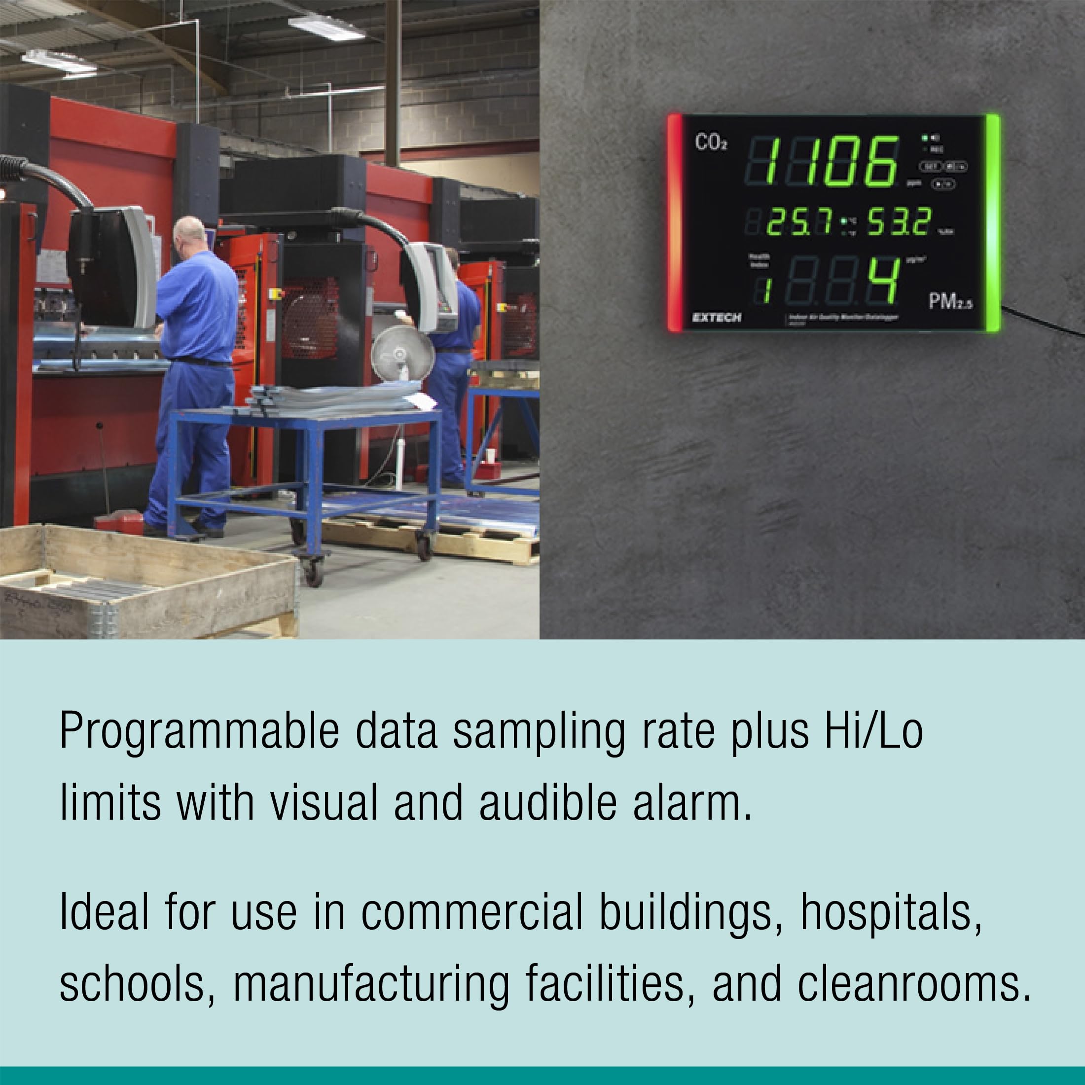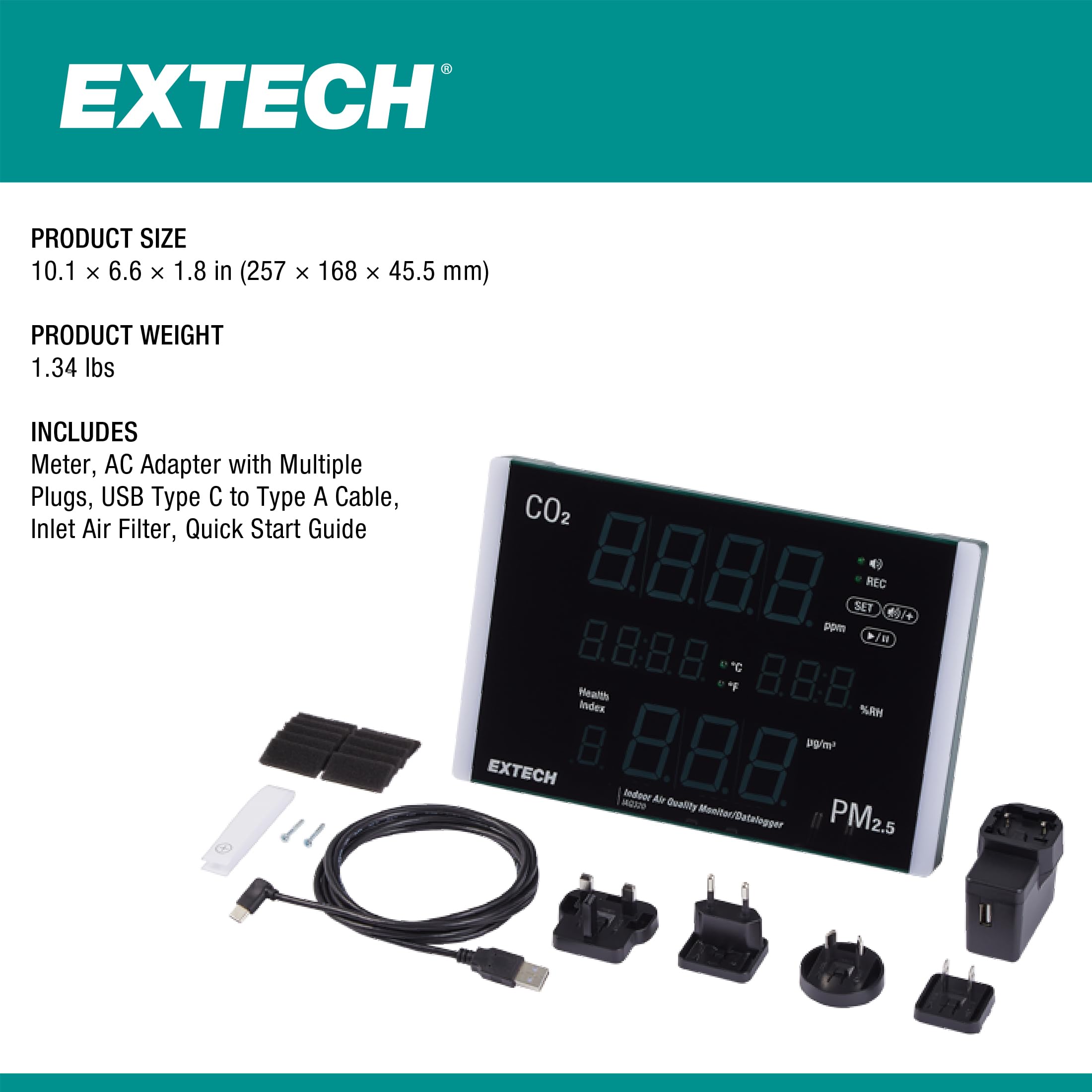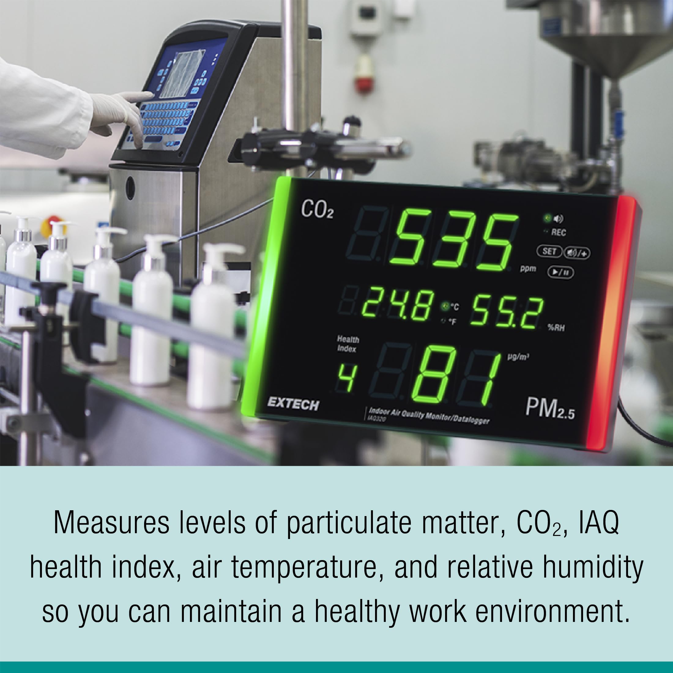 The IAQ320 is designed to help you continuously monitor indoor air quality conditions, ideal for use in commercial buildings, hospitals, schools, manufacturing facilities, and cleanrooms. This meter accurately measures levels of particulate matter, CO?, IAQ health index, air temperature, and relative humidity so you can maintain a healthy work environment. With a 10-inch display, visible and audible alarms, and the ability to store up to 12,000 records, the IAQ320 is a simple and convenient tool for managing indoor air quality.