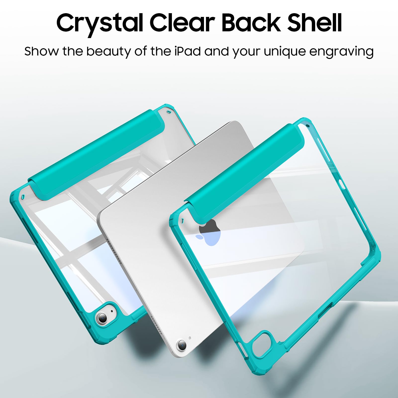 Hardshell back cover with flexible TPU bumper protects your iPad from shocks, drops and impacts. Soft microfiber interior front prevents your tablet from scratched. And the crystal clear back cover will proudly show off the Apple icon.