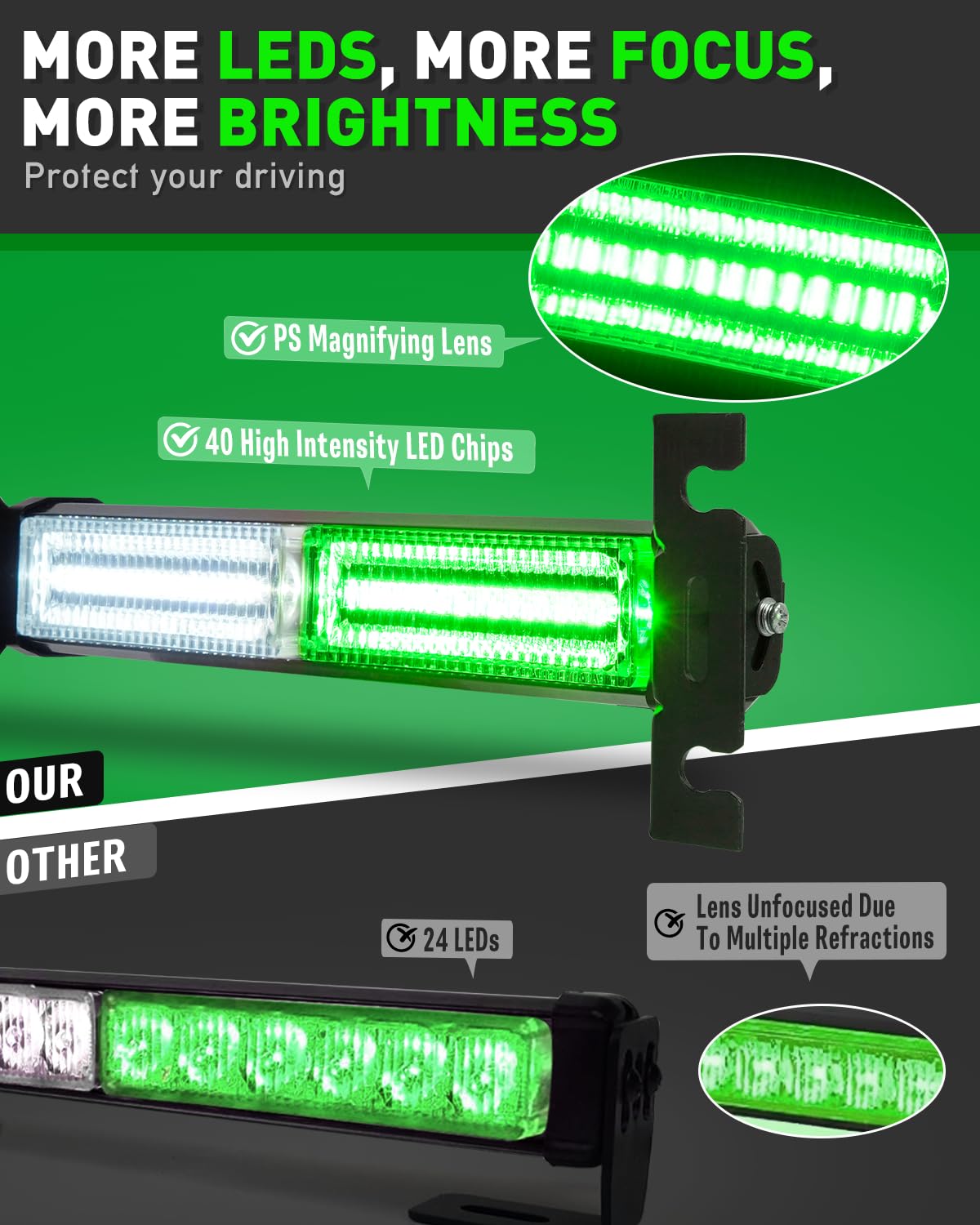 【MORE LEDS, MORE FOCUS, MORE BRIGHTNESS】: HLauto 1002L traffic advisor strobe light bar is designed with 40 high-intensity LEDs and PS magnifying lens, making it brighter than the other 24 LEDs traffic advisor strobe light bars. Ensuring your safety in any driving conditions