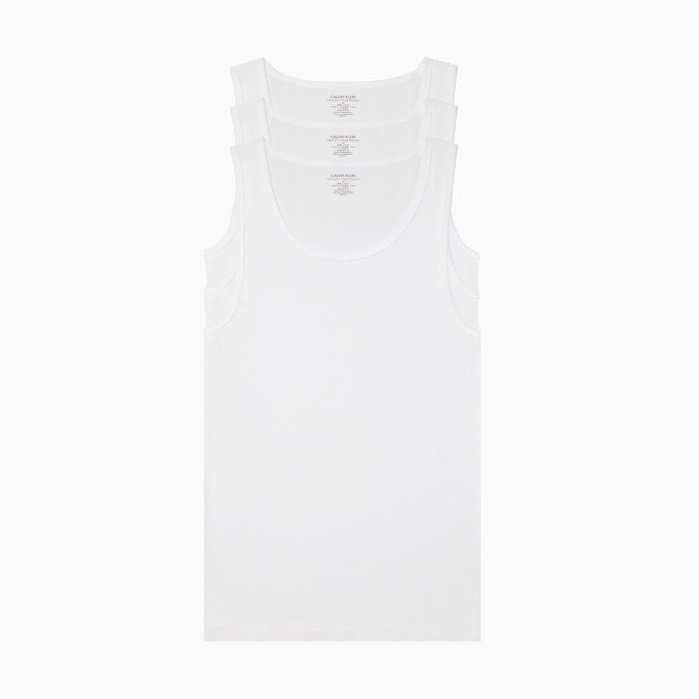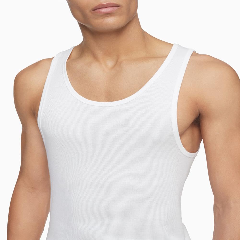 Description Cotton undershirts tank tops multipack, classic fit with no tags for comfort. Made of soft, breathable, durable cotton iconic Calvin Klein logo at left hem. 3-pack.