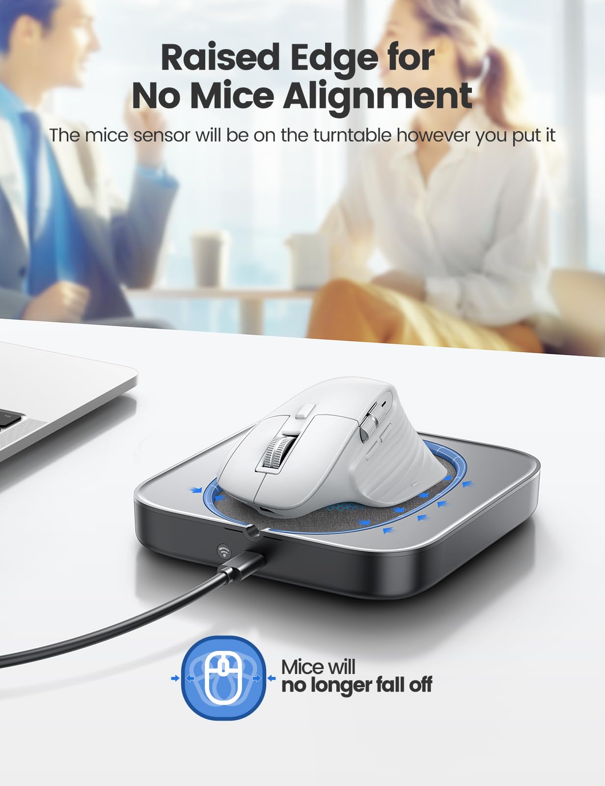 【Easier to Operate & Save Your Time】The only physical mouse mover (6.14 x 5.90 x 1.69 inches) on the market that doesn't require you to calibrate the mouse cursor position before using it. Simply place the mouse on its big turntable (It also applies to larger mice) and press the ON/OFF switch, then it will work automatically.Thanks to its edge protection design, the mouse will never suddenly get stuck or fall off the device. It really saves your time and peace of mind!
