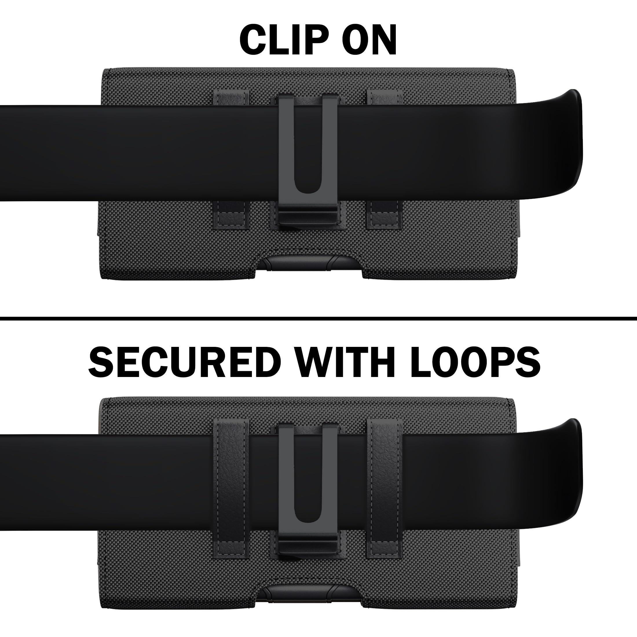 A durable nylon belt clip (not plastic) and 2 secured belt loops make wearing easy and secure.