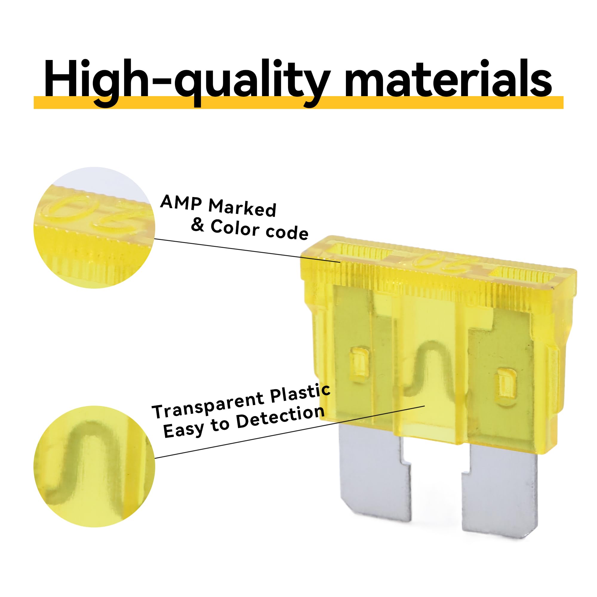 DURABLE - Terminals are constructed from tin-plated zinc for corrosion resistance and enhanced conductivity. Fuses made of premium materials, fast and precise fusing current to protect your vehicles and electrical devices from a short circuit and overload.