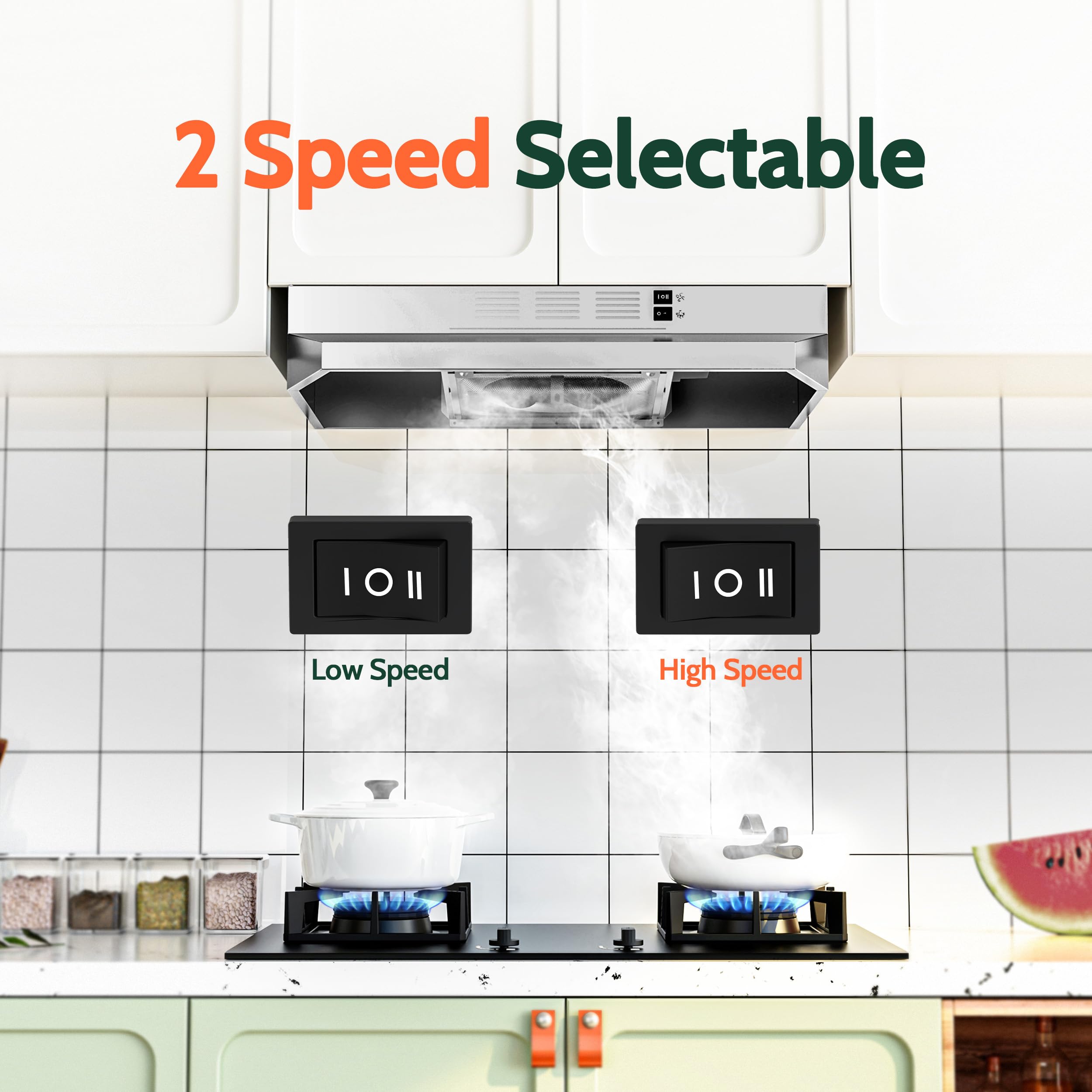 EASY TO OPERATE: Simple to use rocker switches let you adjust the fan speed and the light setting separately, and a 2-speed fan lets you adjust airflow to your cooking needs