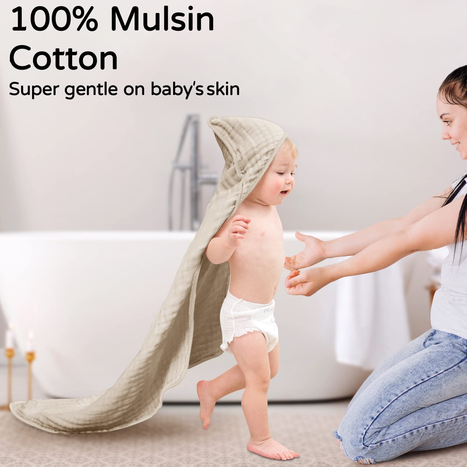 [Excellent Durability] - The 6 layers thickness muslin design is long-lasting enough for everyday use. Sized in 32 x 32 inches, the hooded baby towels are suitable for newborns, infants, toddlers, and small kids up to 3 years old.