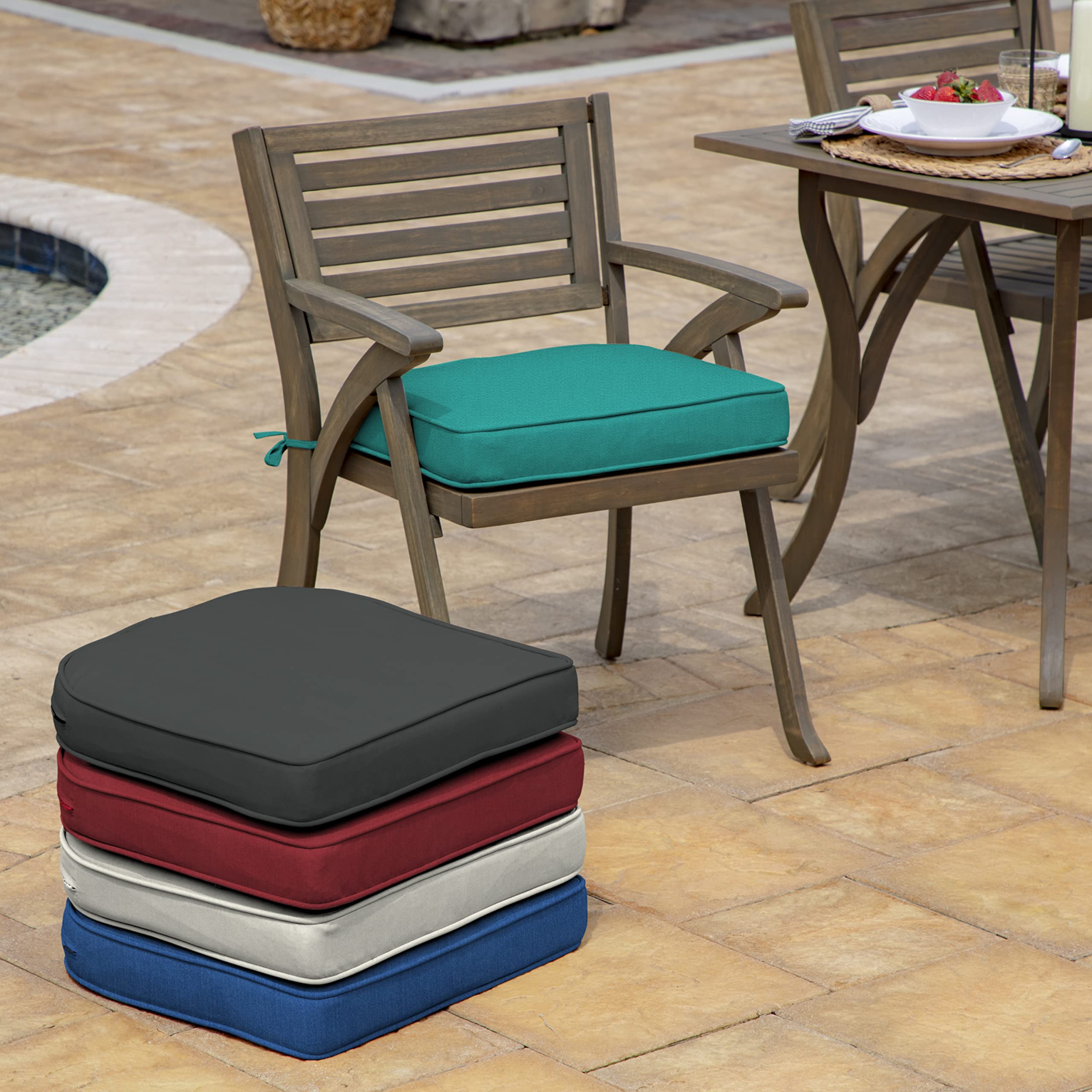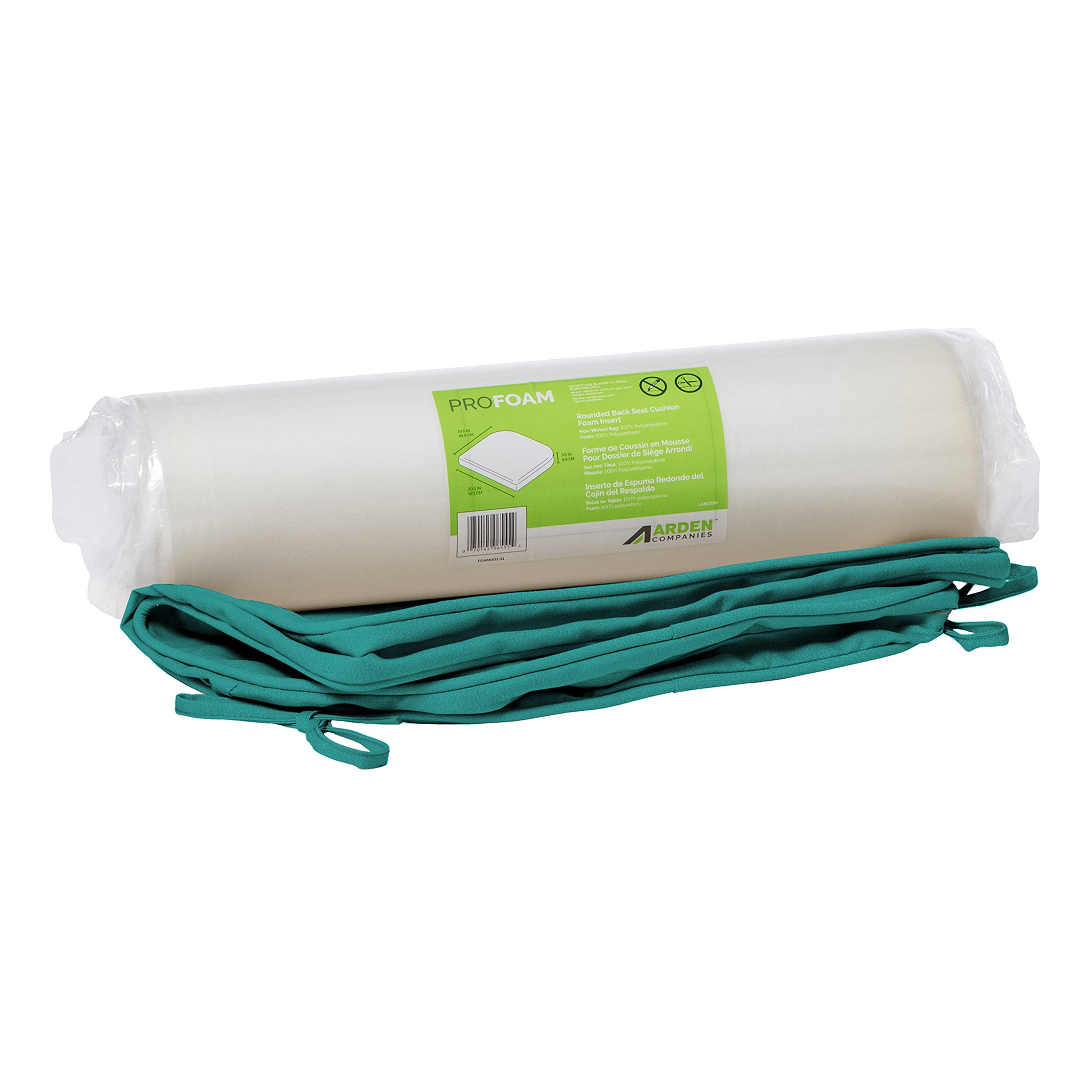 This Arden Selections ProFoam Rounded Back Outdoor Dining Seat Cushion is made with the same high-performance, long-lasting, and durable foam that came with your outdoor furniture set. These firm, yet comfortable outdoor foam patio cushions have a sleek and modern look, adding clean lines to refresh your outdoor furniture. The foam comes in a compressed roll to reduce shipping waste and easily slips into the provided cushion cover. With the clean finish of the piping and two sets of ties to hold it in place, this 100% solution dyed acrylic cushion cover features weather and UV resistant EverTru Acrylic fabric, which resists fading and repels water and stains. The extended UV protection means your fabric will continue looking brighter longer as you enjoy your hours outdoors and comes with a 5-year limited fabric warranty. The proprietary EverBloc stain and water protection ensure optimum outdoor functionality with easy spot cleaning with soap and water, or a mixture of bleach and water for harsh stains. Arden Selections ProFoam comes in a variety of colors and styles, all with easy to use extra long zippers that make changing your cushion a breeze. Look for our other Arden Selections ProFoam cushion styles to fit all your outdoor furniture needs.