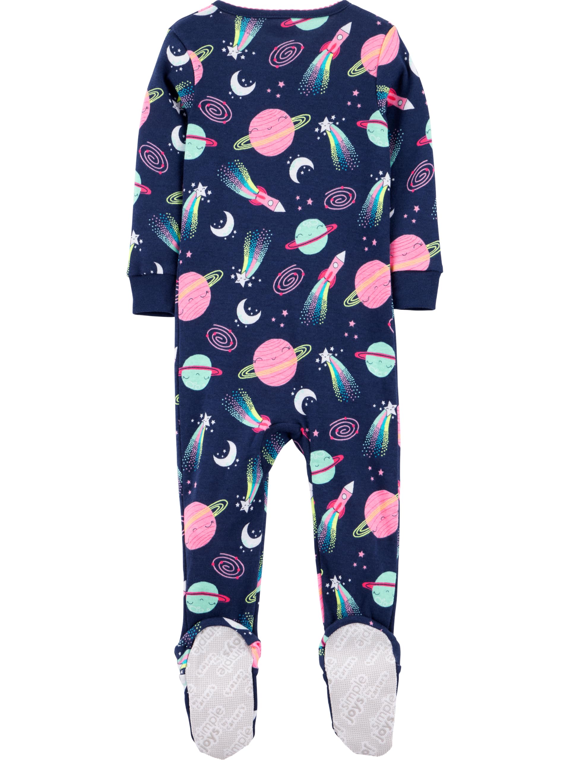Description Wrap your little one in the same trusted quality you've come to love from Carter's with the Simple Joys 3-Pack Snug Fit Footed Pajamas for baby and toddler girls. Designed for comfort and safety, these pajamas feature a snug fit that keeps your child warm and secure throughout the night. Made from soft, breathable materials and OEKO-TEX certified for safe, chemical-free wear, they ensure a cozy sleep with every use. The full-length zipper with a protective chin tab makes dressing and diaper changes quick and easy, while the tagless design eliminates irritation for sensitive skin. With a variety of fun prints and patterns, bedtime will be both stylish and exciting. This 3-pack pajamas set for girls offers excellent value without compromising on the trusted durability and comfort you expect from Carter's. Ideal for all seasons, these footed pajamas are perfect for your little one’s bedtime routine.
