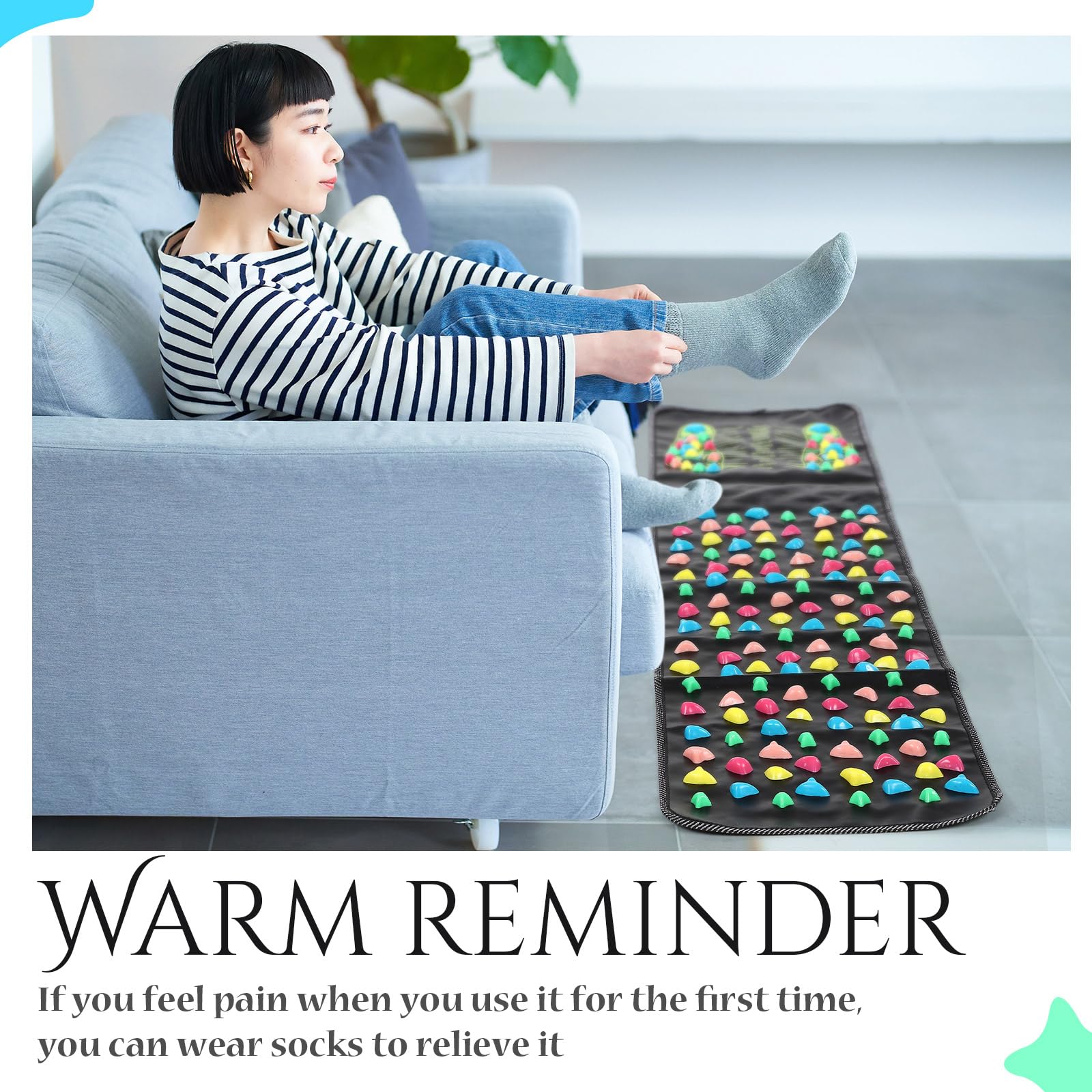 Wide Range of Applications: this foot acupressure mat can be rolled up, so that you can roll up the walking mat and put it aside when not in use, it will not take up too much space for you; There is no space limit for the use of this foot massage mat, you can use it indoors and outdoors, in the living room, bedroom, kitchen, etc., and massage your soles at any time; You can also use this foot acupressure mat with your parents, partner